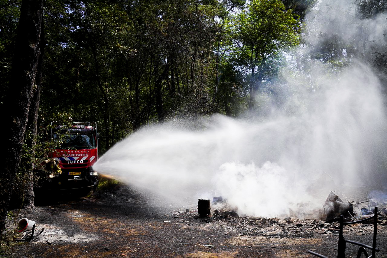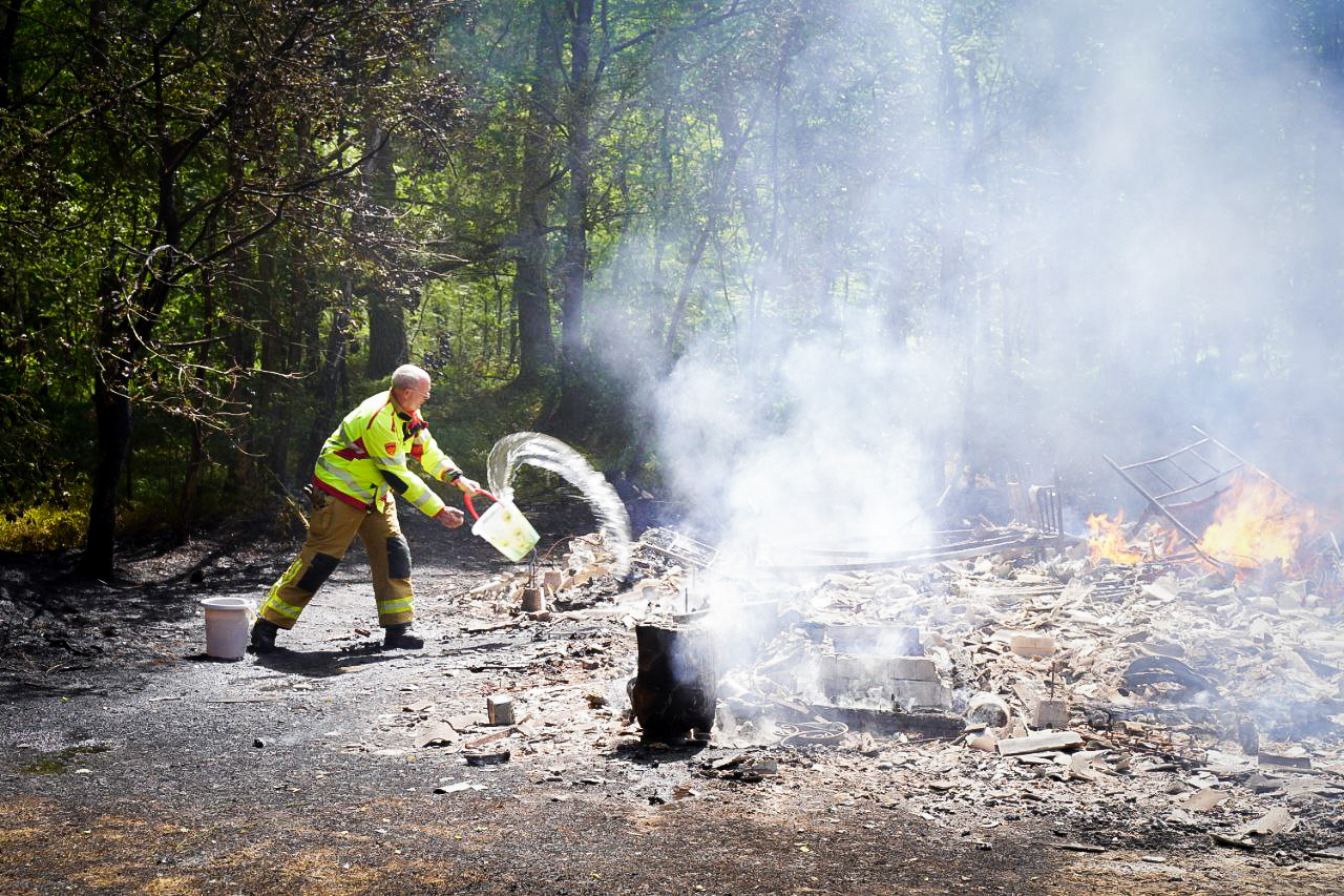 Vanwege de droogte in het bos zal het nablussen nog enige tijd duren. De omgeving rondom het huisje is afgezet omdat er een vermoeden is dat er asbest aanwezig is, wat nader onderzocht moet worden.