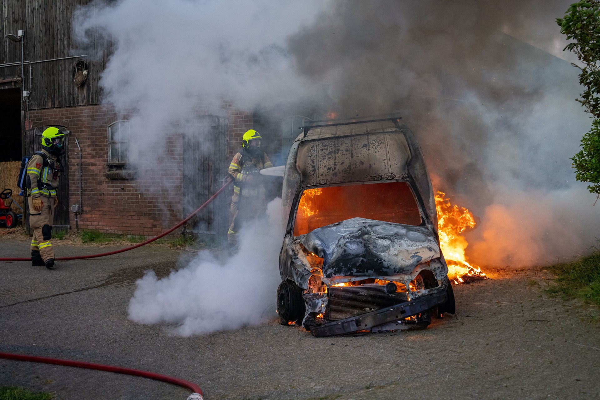 Bij aankomst van de brandweer stond de auto volledig in brand en was niet meer te redden. Dankzij het alerte optreden van de voorbijgangers werd veel grotere schade voorkomen, aangezien de kans op overslag naar de schuur of woning groot was.