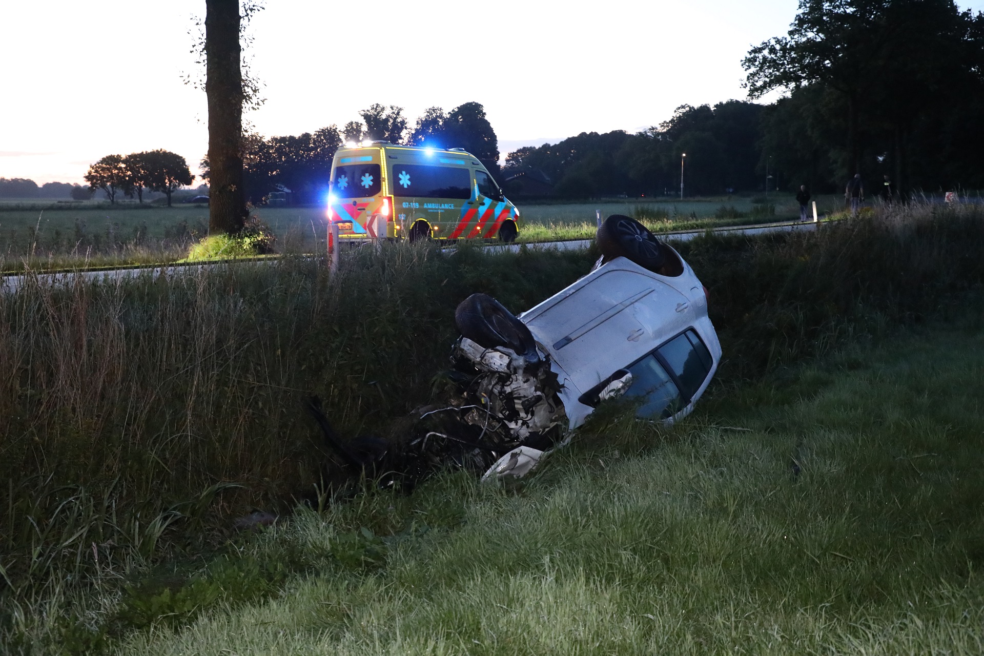 De man reed rond 04:30 uur vanuit de richting van Wekerom naar Barneveld, botste aan de rechterkant van de weg tegen een boom en belandde tientallen meters verderop op z’n kop in de sloot. De man kon zelfstandig uit de auto komen maar is wel per ambulance naar het ziekenhuis gebracht.