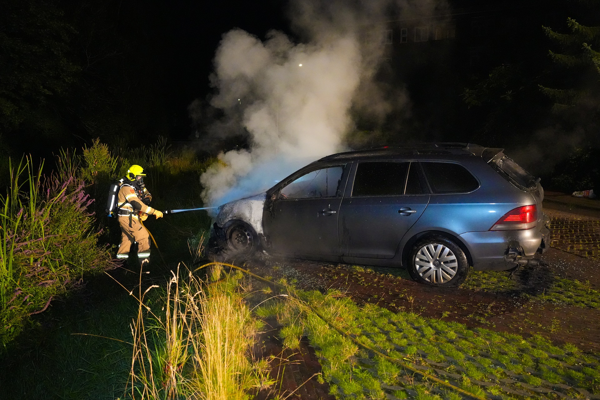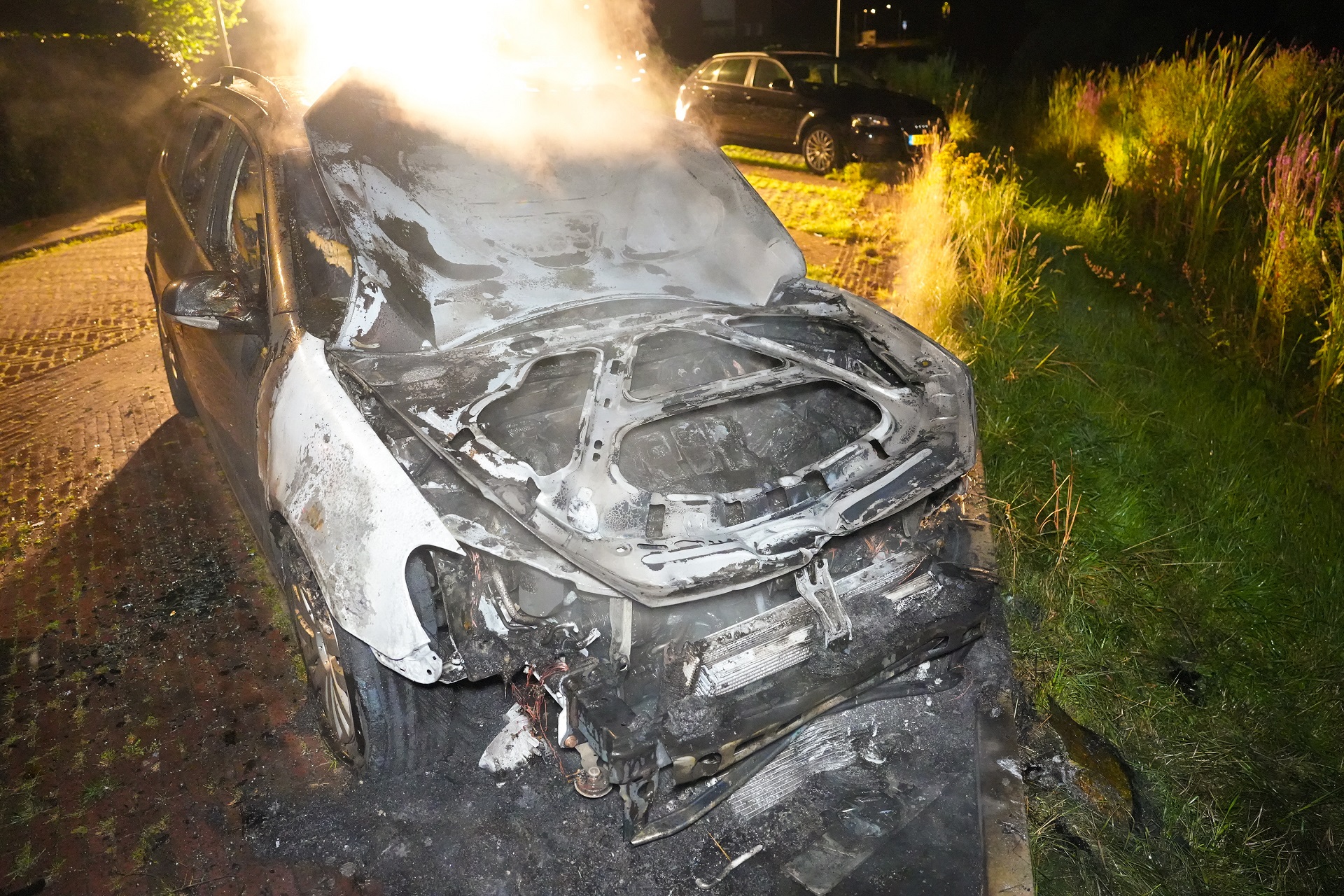 Rond 04:00 uur werd de brandweer opgeroepen en had het vuur snel onder controle, maar de auto brandde aan de voorzijde volledig uit, maar raakte ook aan de achterzijde beschadigd. De oorzaak van de brand is onbekend.