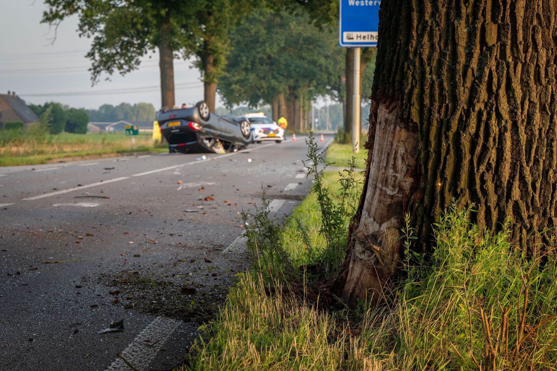 Automobiliste botst tegen boom en vliegt over de kop
