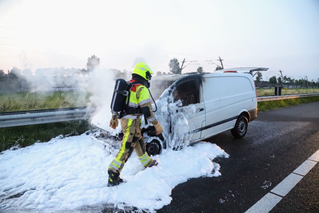 Bij aankomst van de brandweer bleek een busje in brand te staan op de vluchtstrook. Er sloegen hoge vlammen uit het voertuig en een grote rookpluim was zichtbaar. De brandweer maakte gebruik van schuim om de vlammen te doven. Bij de brand raakte niemand gewond.