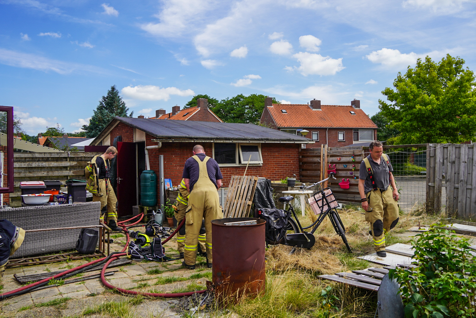 Even na 11:30 uur kwam de melding van de brand binnen waarna de brandweer werd gealarmeerd. Ter plekke woedde een felle brand in een schuur waarbij veel rook vrij kwam. De bewoner heeft een eerste bluspoging gedaan, maar ademde daarbij veel rook in en moest worden gecontroleerd in een ambulance.