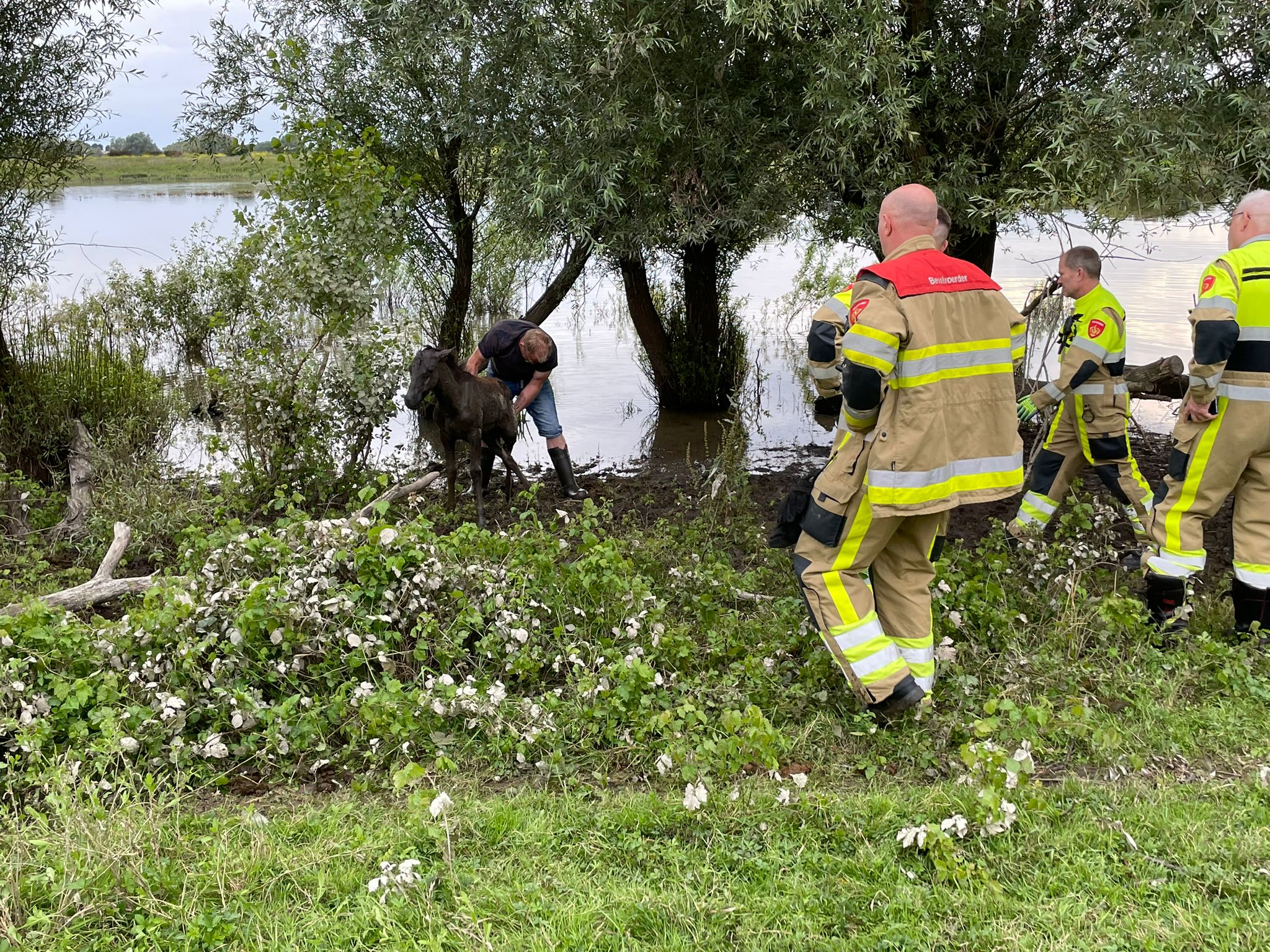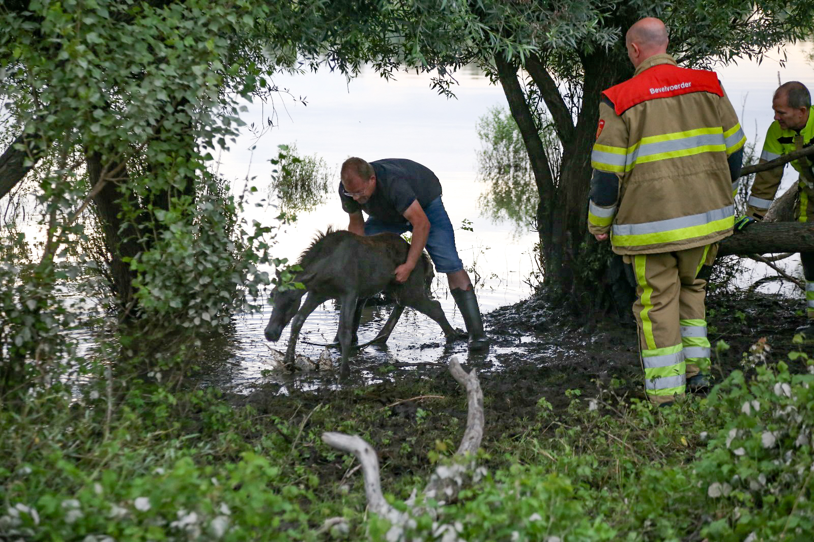 KEKERDOM – Een fietser uit Millingen aan de Rijn trof zondagavond een jong Konikpaard aan in nood langs de Duffeltdijk. Bij nadere inspectie onderaan de dijk zag de voorbijganger dat het dier vastzat tussen een boom en dringend hulp nodig had.