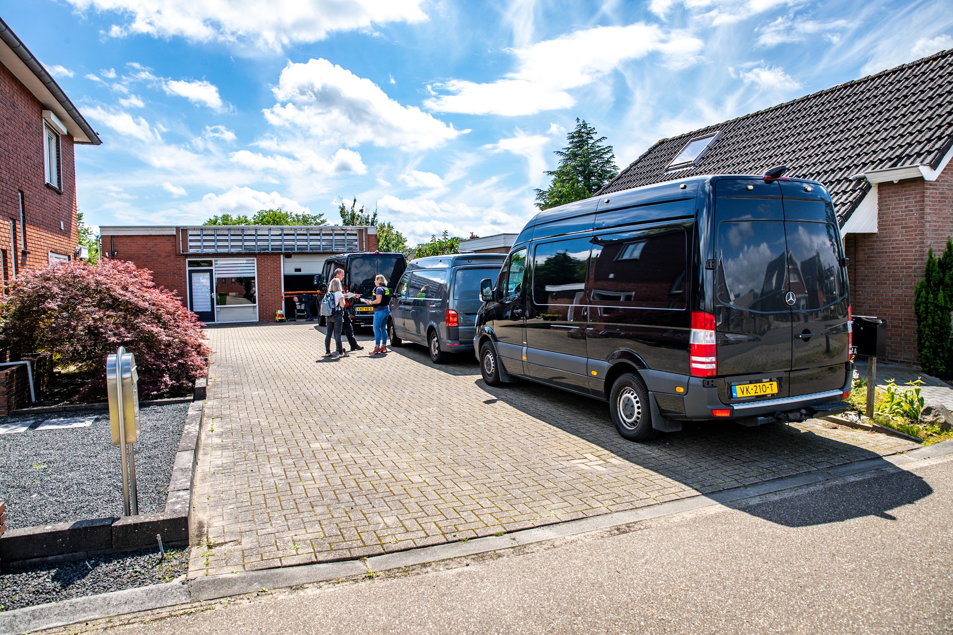 De LFO (Landelijke Faciliteit Ontmantelen) is samen met de Recherche ter plaatse. Ze zijn nu onderzoek aan het doen wat er in de schuur ligt. Agenten die de loods in gaan dragen beschermende middelen zoals maskers, en men maakt foto’s van zowel de loods als de woning en andere percelen op het stuk grond.