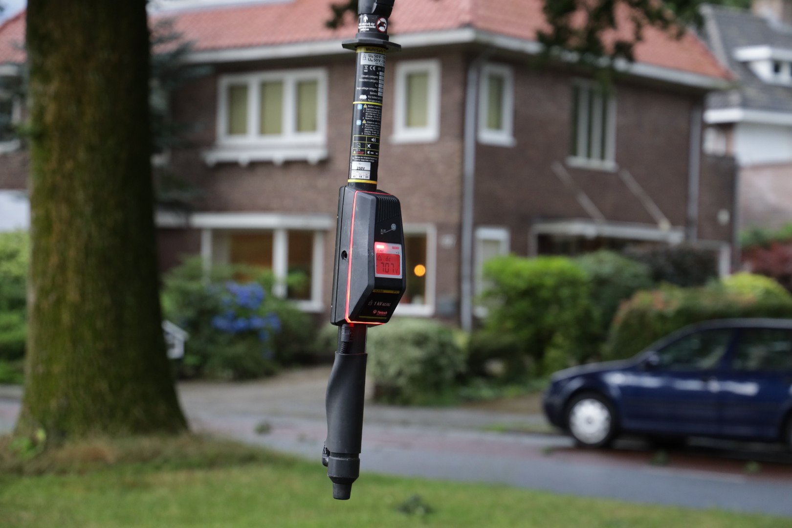 De trolleylijn voert 700 volt, en deze moet eerst worden afgeschakeld om veilig te kunnen werken.