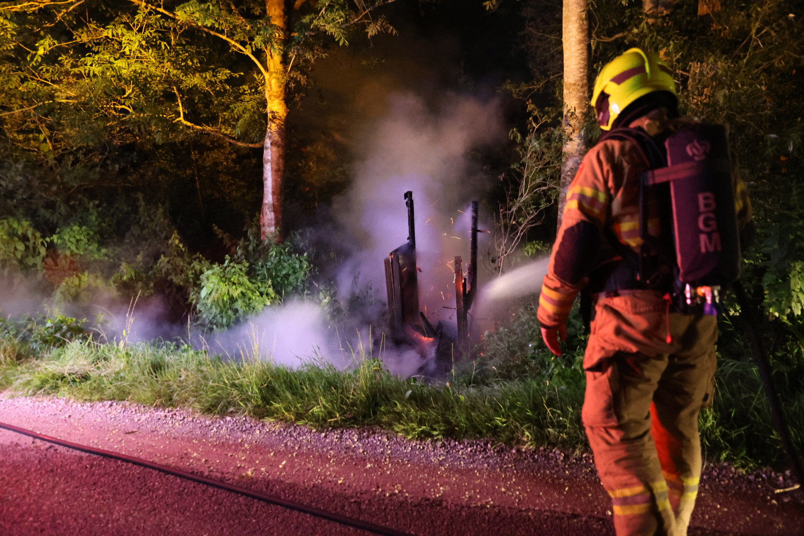 Het incident gebeurde omstreeks 03:00 uur. De bewoner van de woning hoorde een harde klap, gevolgd door stroomuitval. Vlak hierna ontdekte hij dat de elektrakast in de voortuin van de woning volledig in brand stond.