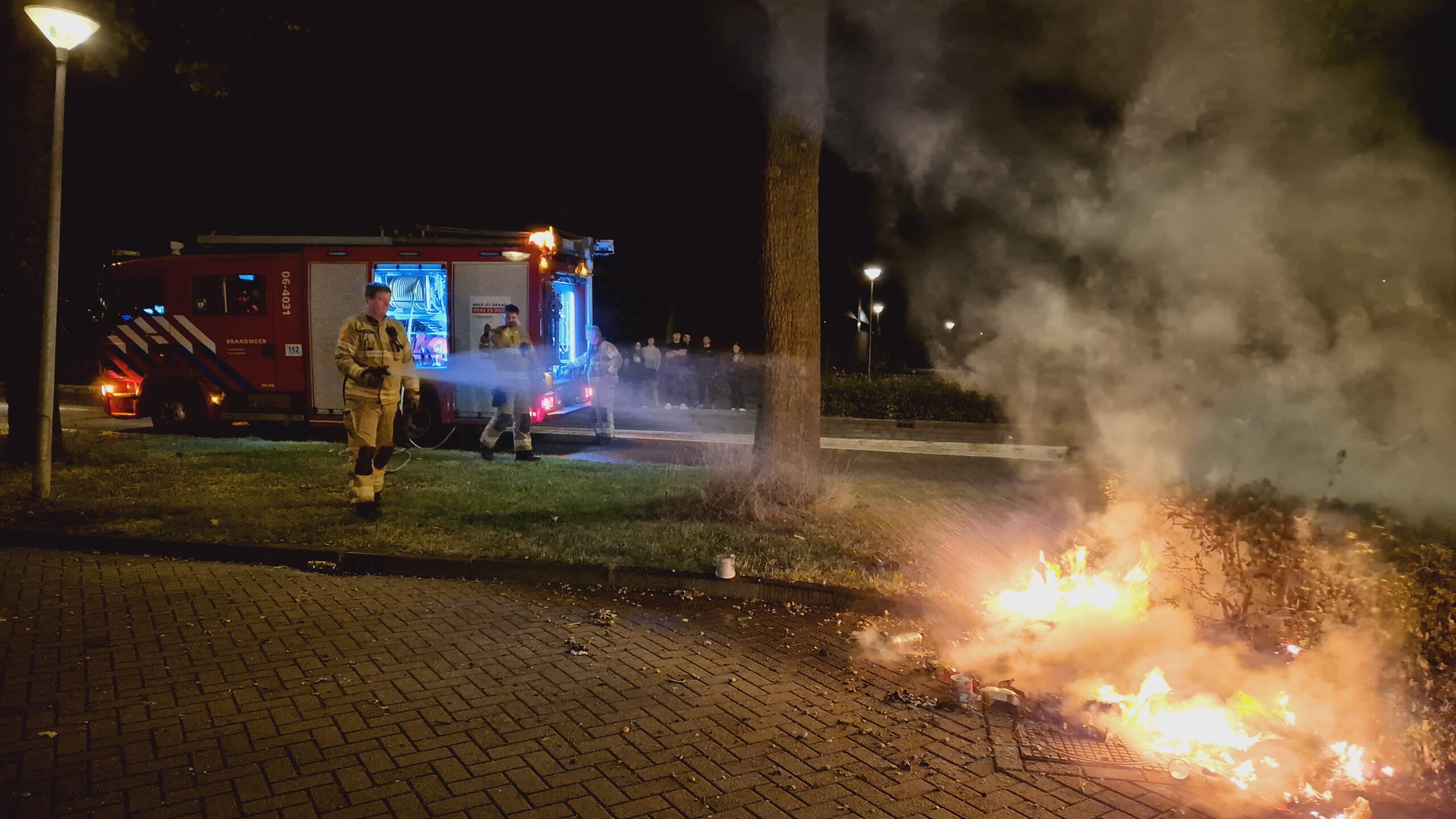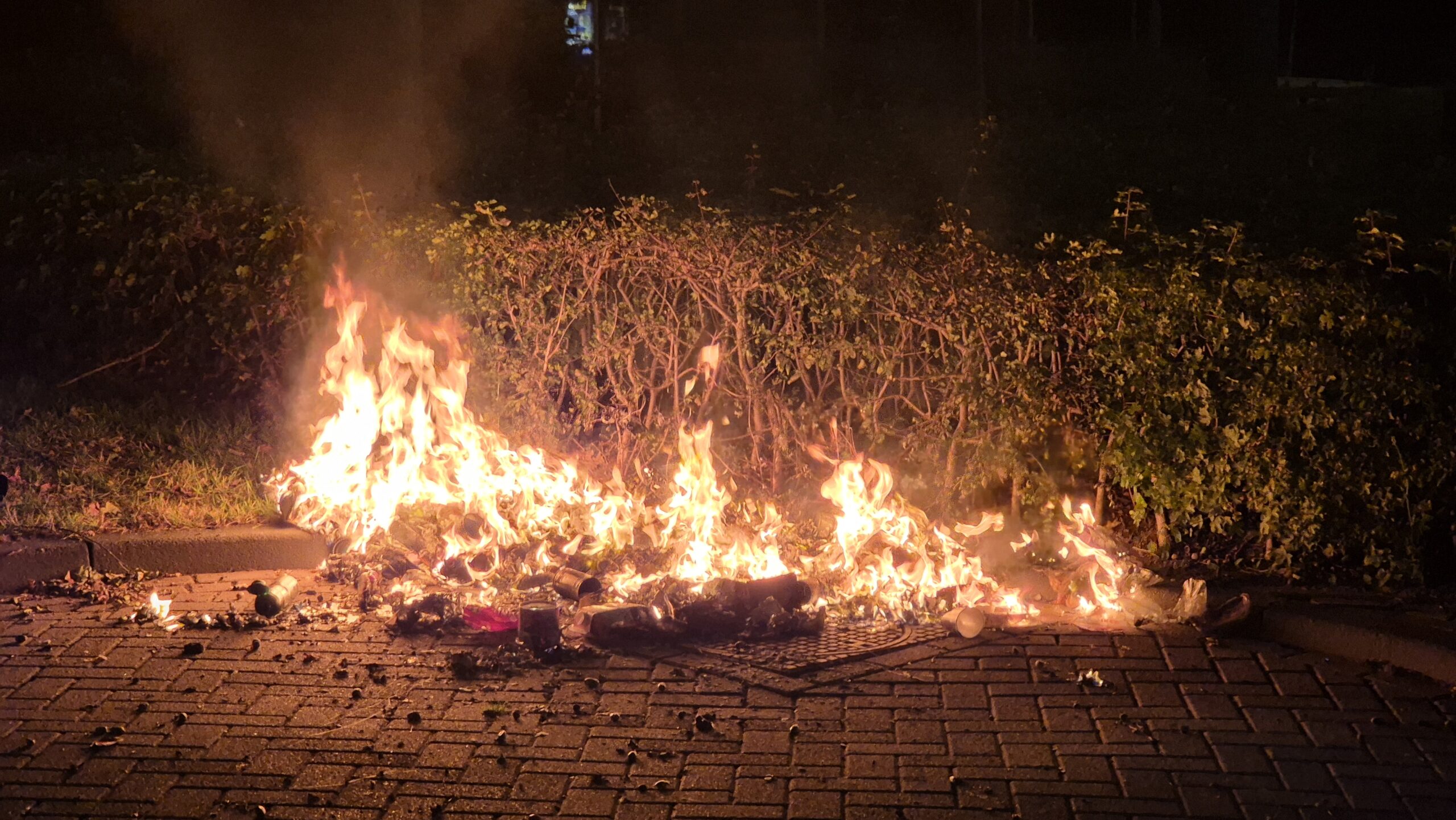 Afval in brand op straat, brandweer heeft vuur snel gedoofd