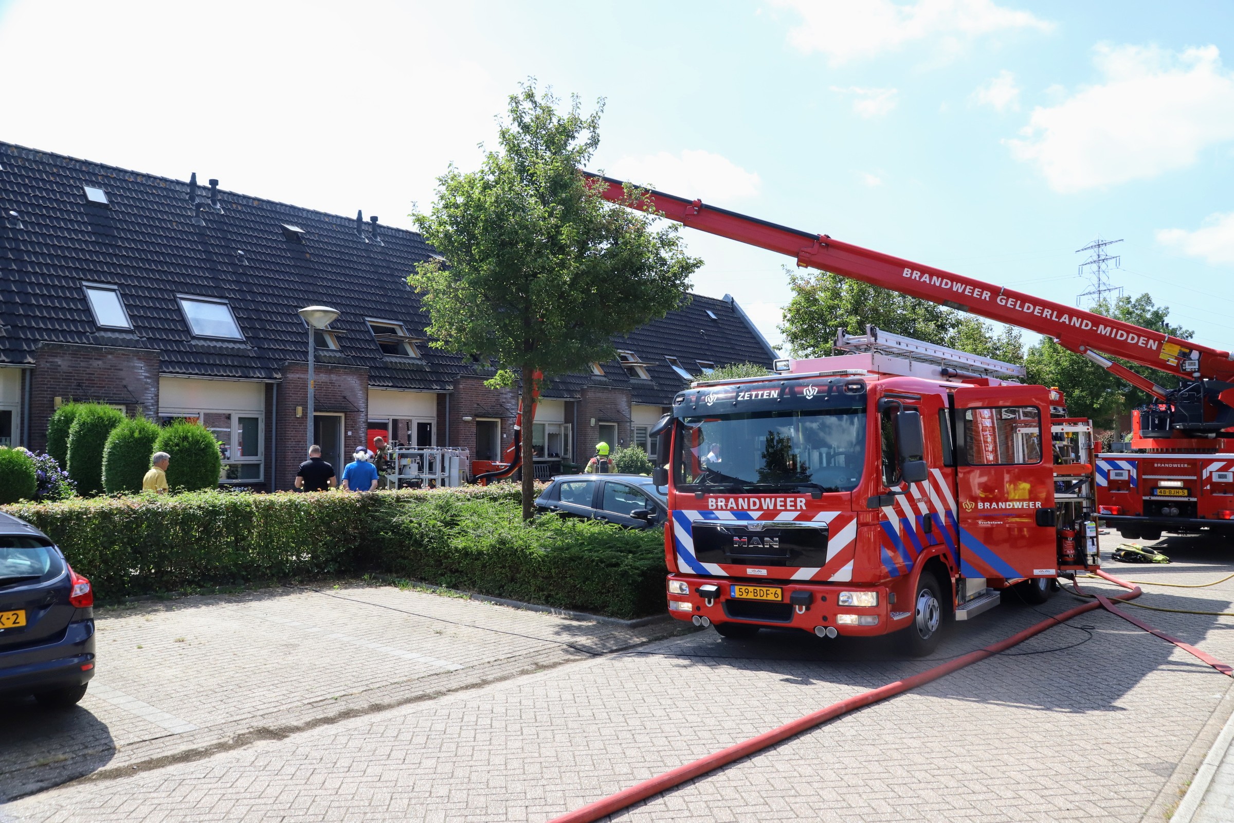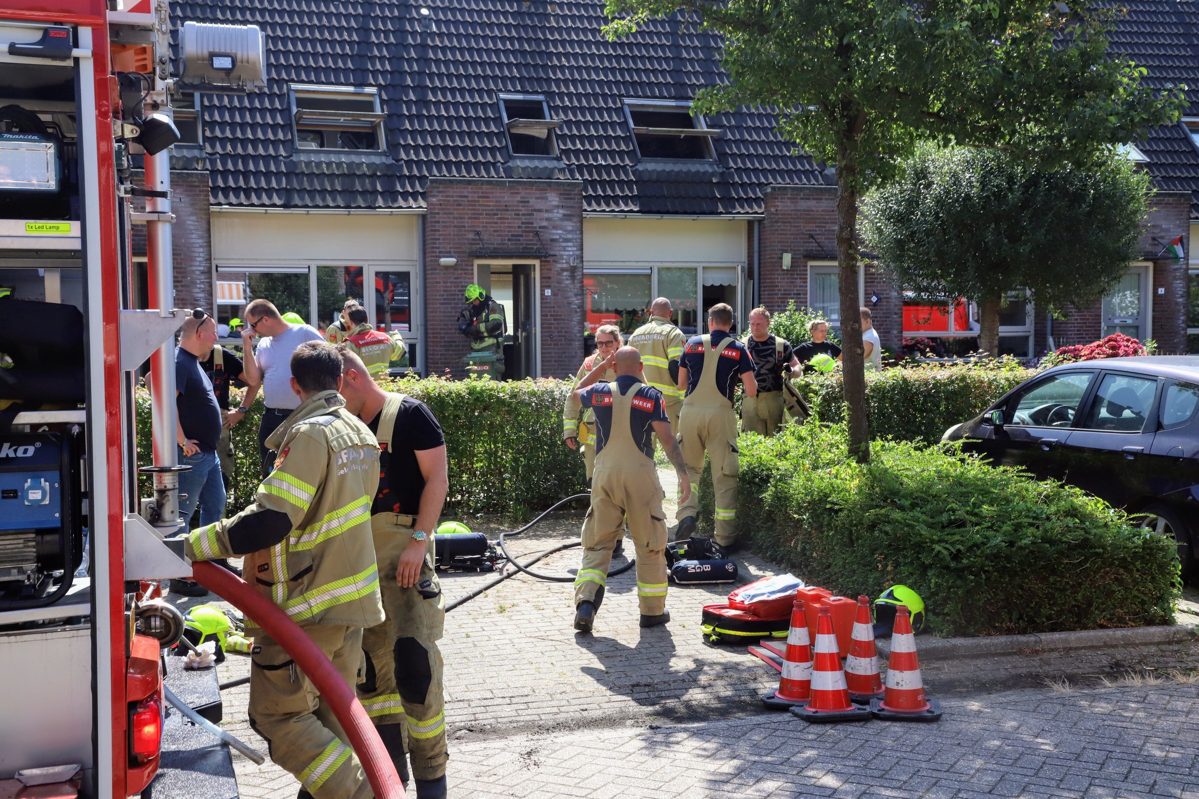 Bij aankomst van de brandweer sloegen de vlammen uit de dakramen. De brandweer kreeg te horen dat er nog een vrouw mogelijk in de woning aanwezig was. De brandweer heeft haar uit de woning gered en ze is met spoed overgebracht naar het ziekenhuis. Ook de traumahelikopter kwam ter plaatse voor assistentie.