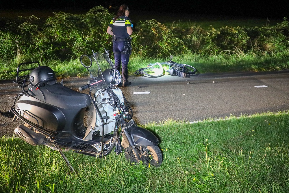 Beide raakten gewond en werden met gezichtsletsel naar het ziekenhuis gebracht. De fietsster reed met drie anderen richting Barneveld, terwijl de scooterrijder richting De Valk reed. De politie onderzoekt de oorzaak, maar een blaastest toonde aan dat de scooterrijder onder invloed van alcohol was. Zowel de scooter als de fiets raakten zwaar beschadigd, met het voorwiel van de fiets volledig afgebroken.