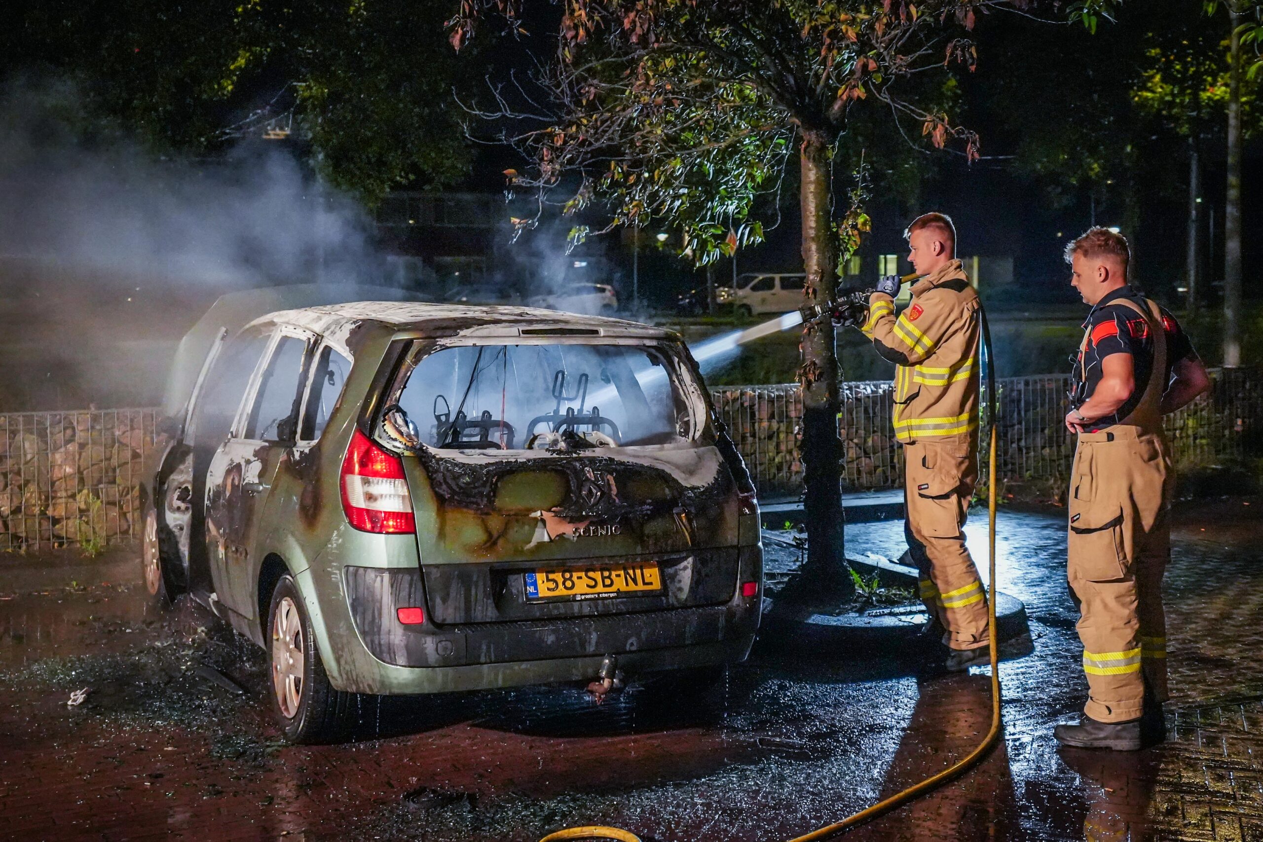 Van de auto is weinig meer over. De politie doet onderzoek en sluit brandstichting niet uit.