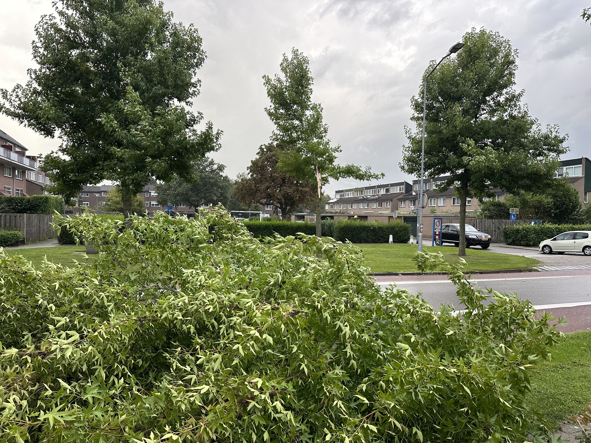 De brandweer kwam ter plekke en heeft het afgebroken deel in stukken gezaagd en van de weg gehaald.