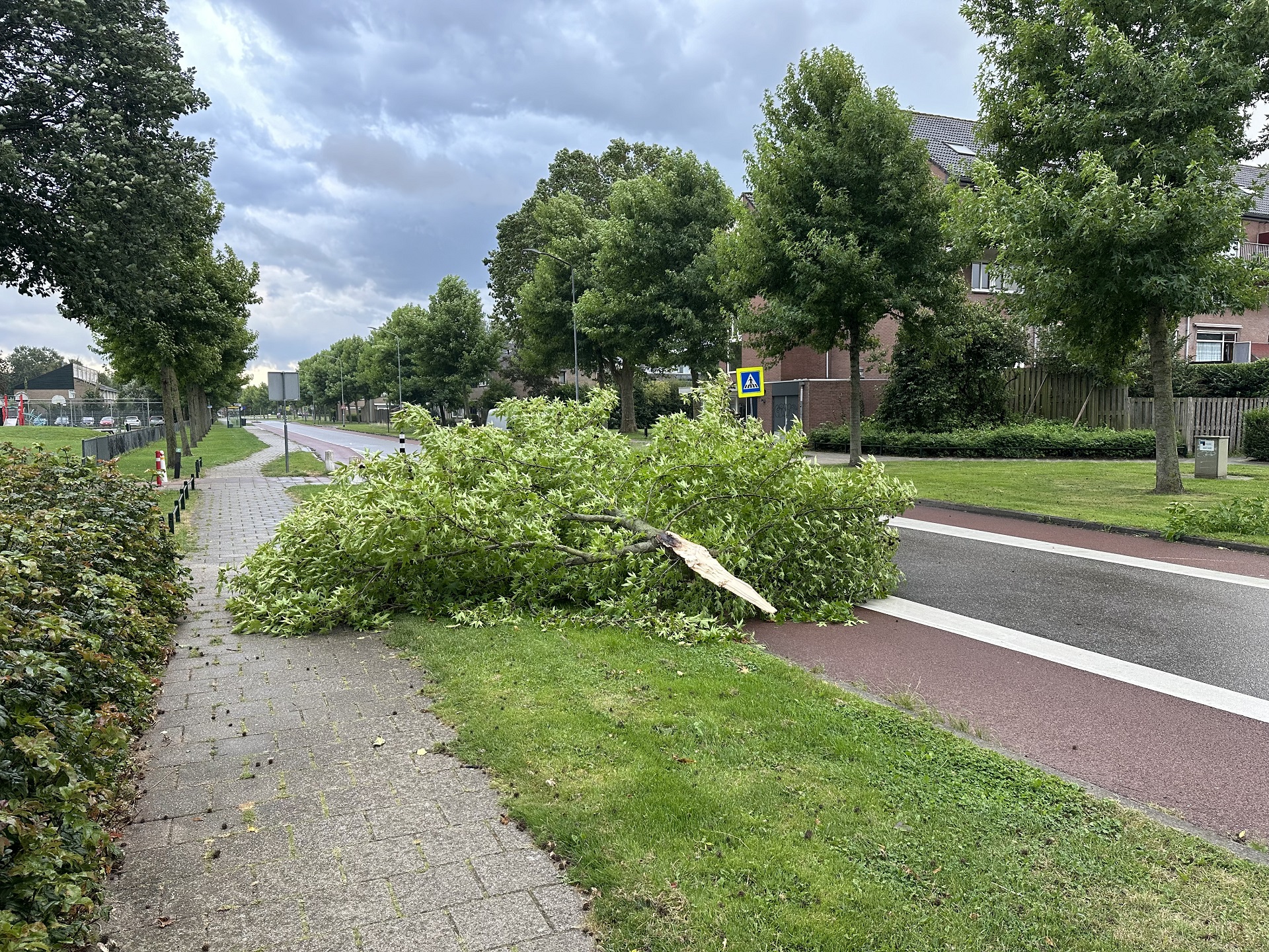 Rond 18:45 uur begon het ineens fors te waaien in Westervoort en brak een boom in twee stukken. De top van de boom kwam aan de andere kant van de weg terecht. Korte tijd was het verkeer gestremd.