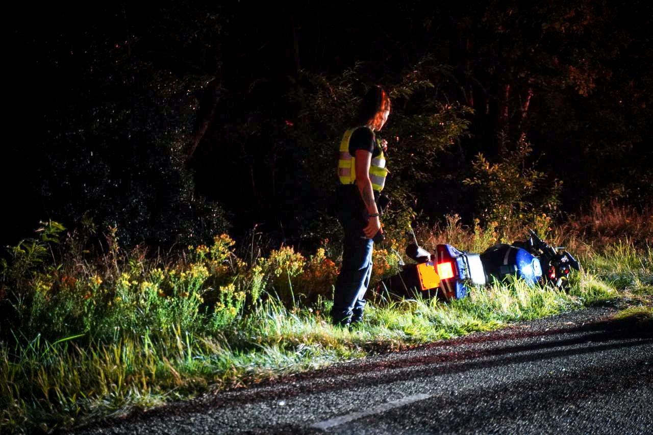 Een motorrijder en zijn passagier kwamen hard ten val na een aanrijding met een hert. De bestuurder probeerde nog uit te wijken, maar zonder succes. De passagier, een vrouw, raakte gewond en is naar het ziekenhuis gebracht.