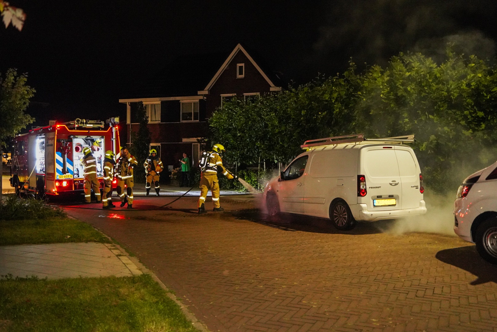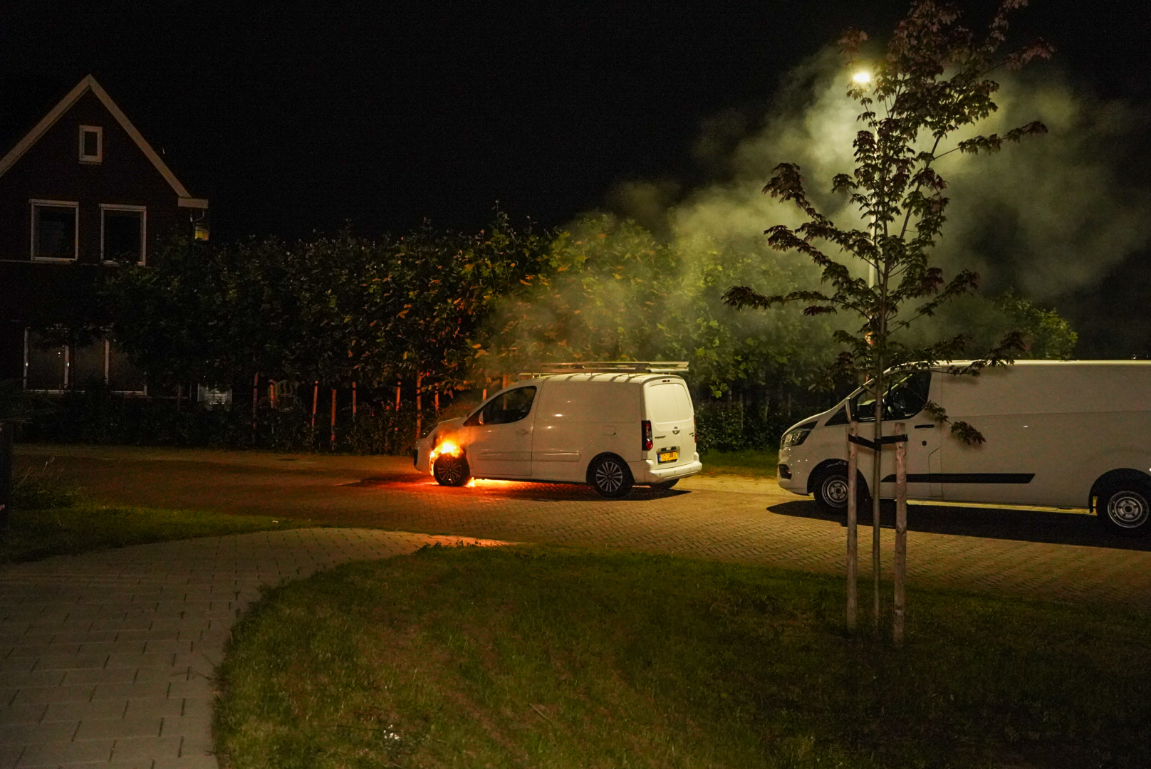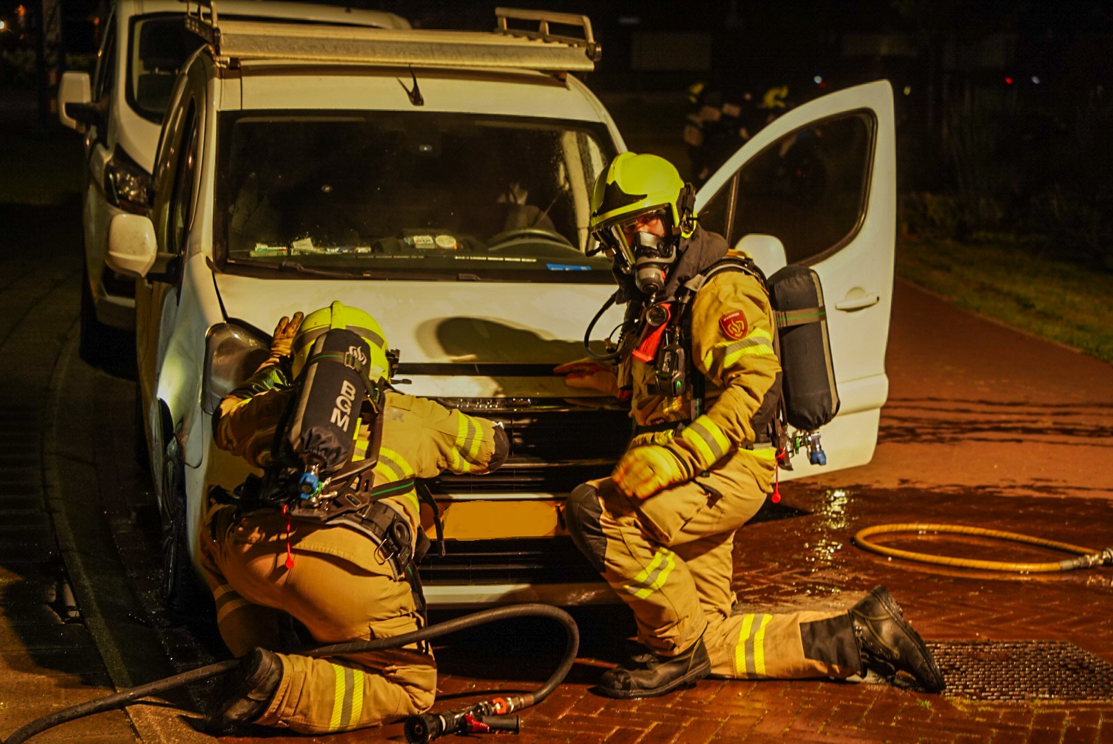 Even voor 00:05 uur kwam de melding van de brand binnen bij de meldkamer, waarna de brandweer met spoed werd opgeroepen. Ter plekke woedde de band direct onder het motorblok en bij de voorbanden. Nadat de brandweer ter plekke kwam was het brandje gauw geblust.
