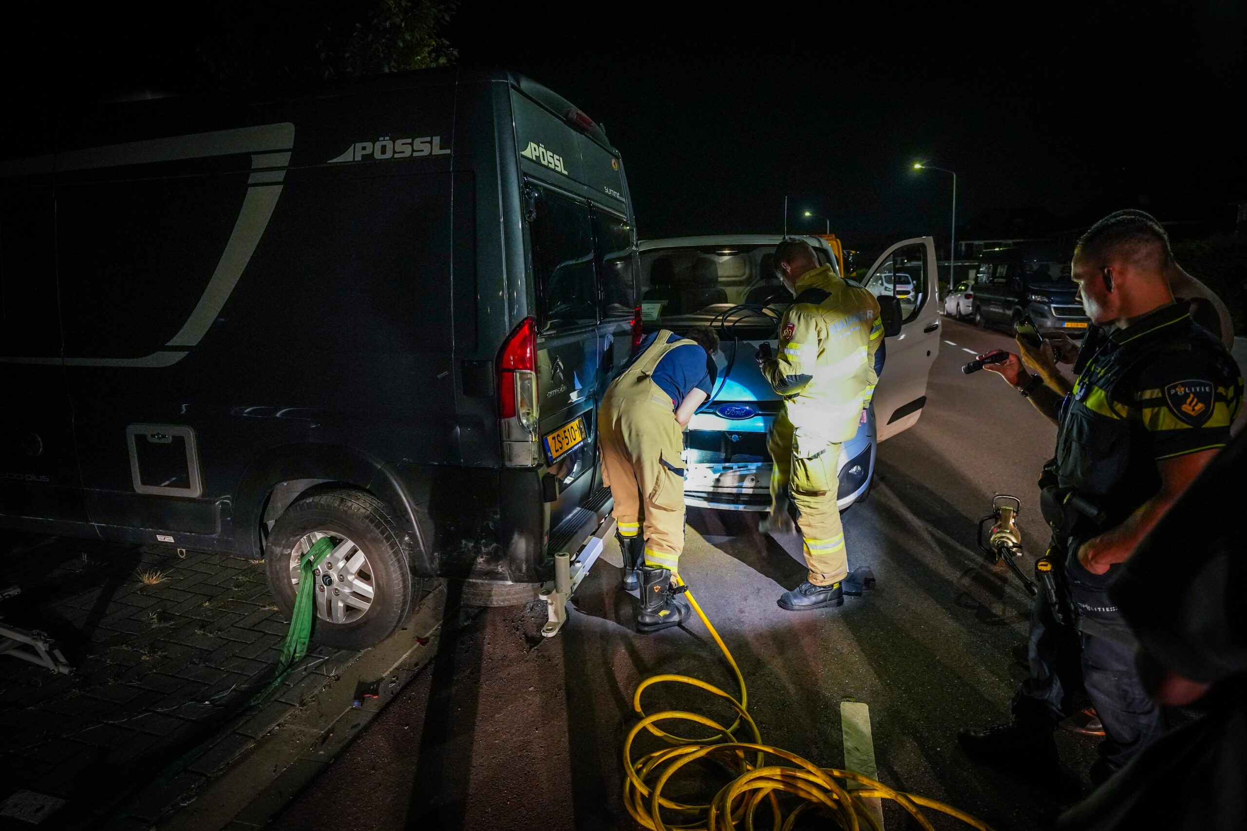 De bestelbus zat zo vast in de camperbus dat zelfs een berger en diverse hulpmiddelen deze niet konden loskrijgen. Even na middernacht werd de brandweer ingeschakeld. Uiteindelijk slaagden zij er om 1.00 uur in, met behulp van een hydraulische schaar en trekkracht van de brandweerwagen, de voertuigen van elkaar los te maken. Buurtbewoners applaudisseerden voor de brandweer, waarna de bestelbus eindelijk kon worden weggesleept.