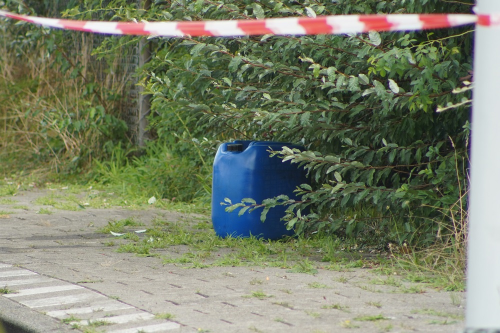 Medewerkers van een naastgelegen bedrijf zagen de lekkende jerrycan in de berm liggen. Er kwam een penetrante geur vanaf, laat een medewerker weten. De politie werd gebeld en de medewerkers zetten de berm af met lint.