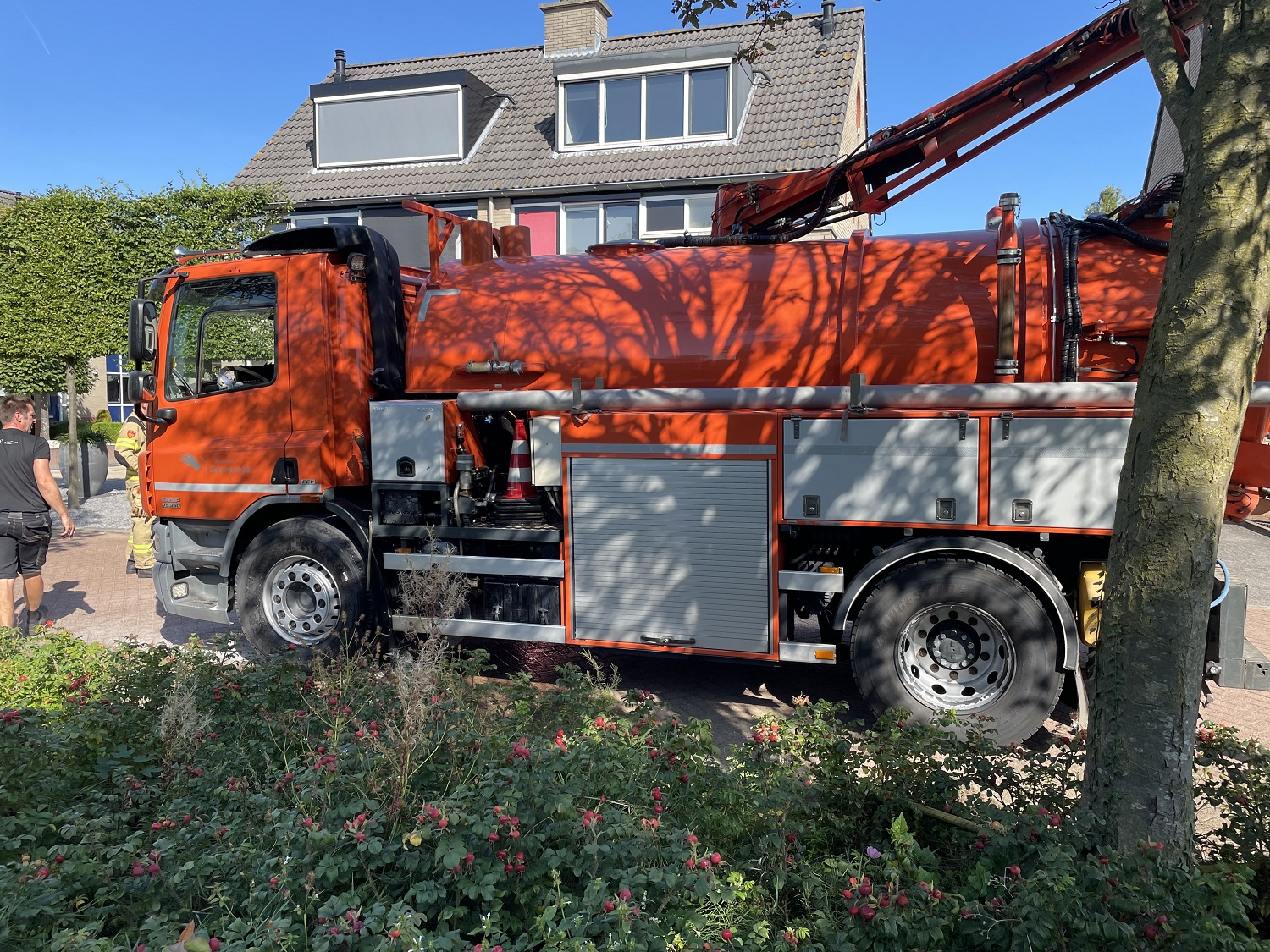 Medewerkers waren rond 10:45 uur met een kolkenzuiger bezig in het riool toen een hydraulisch systeem vlam vatte. Met een poederblusser was het vuur snel geblust. De brandweer heeft een nacontrole gedaan. Een monteur komt ter plaatse voor de vrachtwagen. De zuigslang staat nog in het riool.