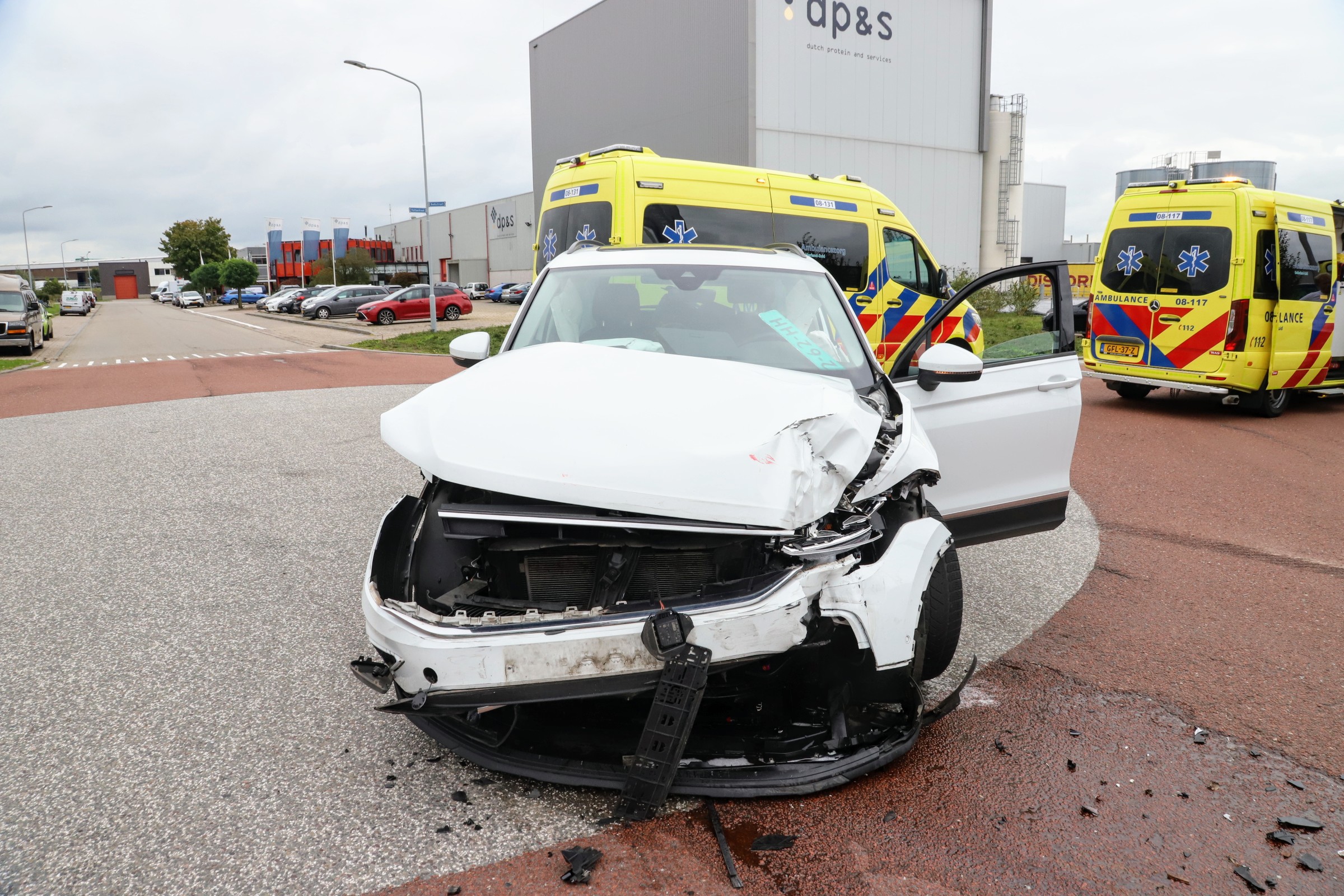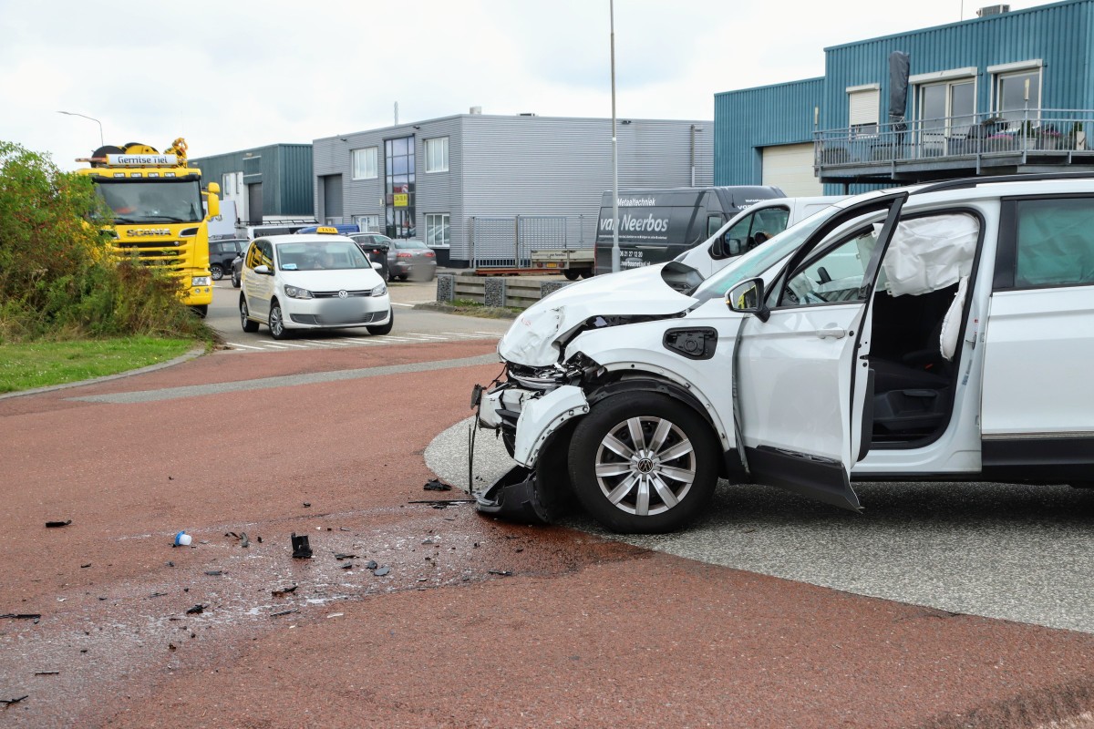 Van de andere personenauto kwamen de airbags uit. De berger heeft twee voertuigen meegenomen.