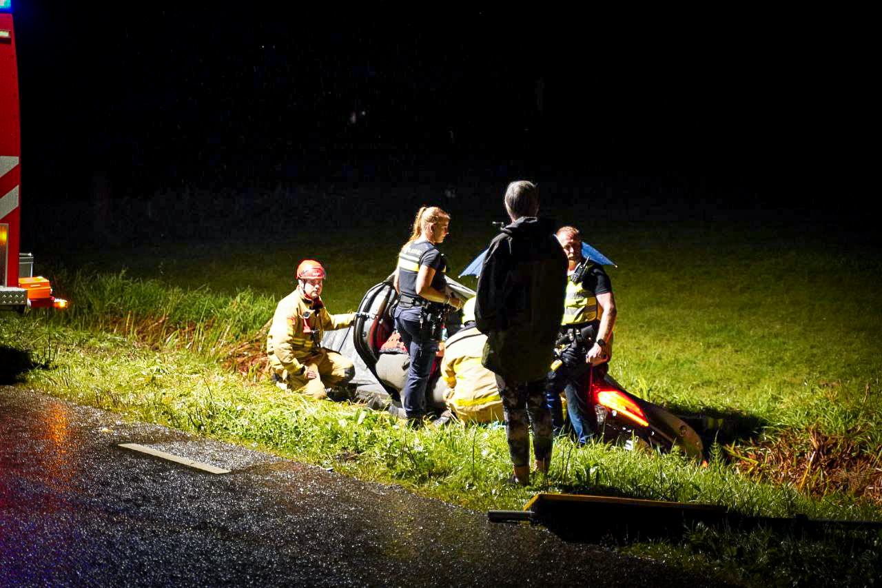 Een automobilist verloor door nog onbekende oorzaak de controle over het stuur, raakte twee bomen en belandde uiteindelijk in een sloot. Tal van hulpdiensten, waaronder een duikteam, zijn ter plaatse om het slachtoffer te helpen.