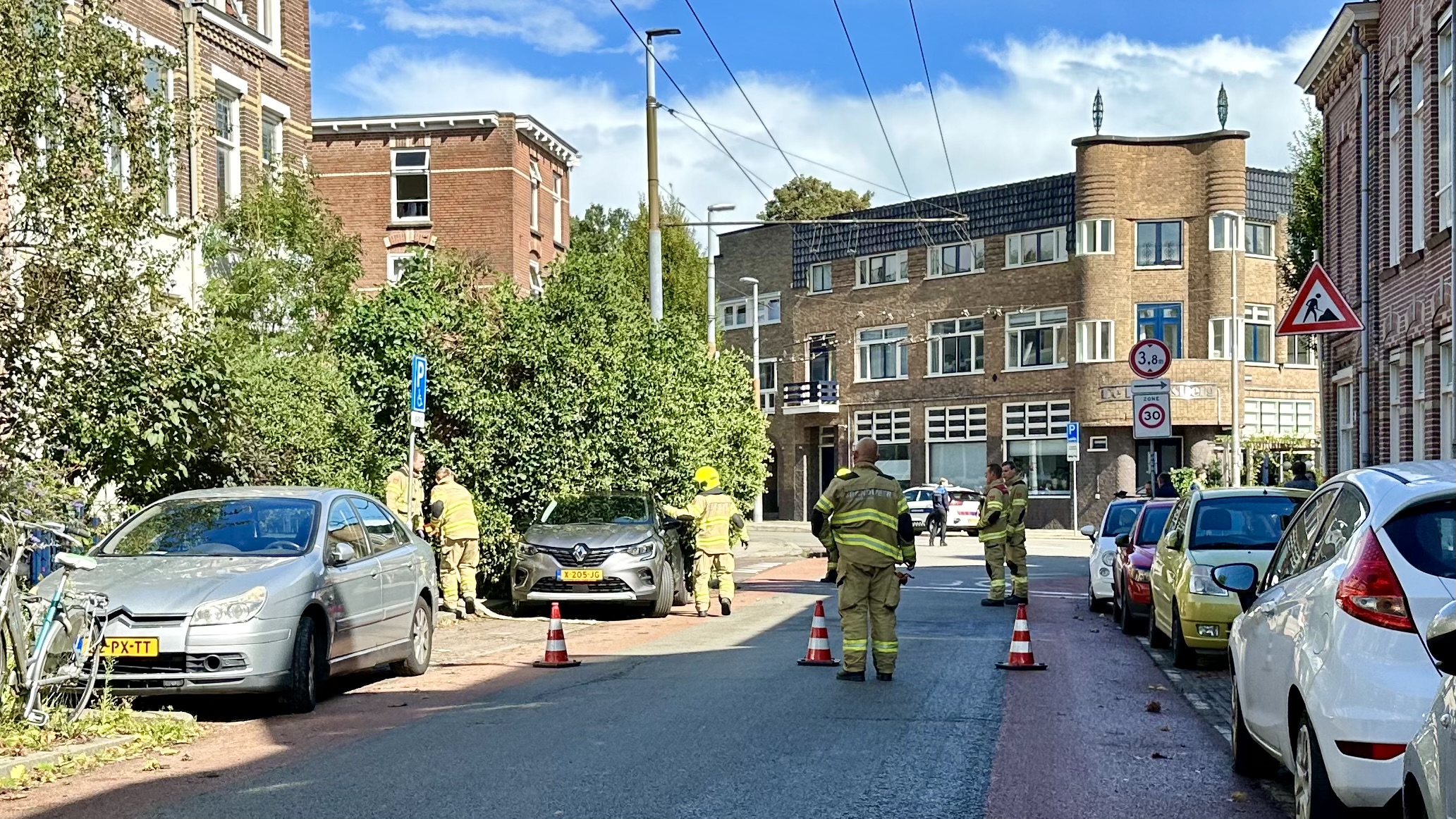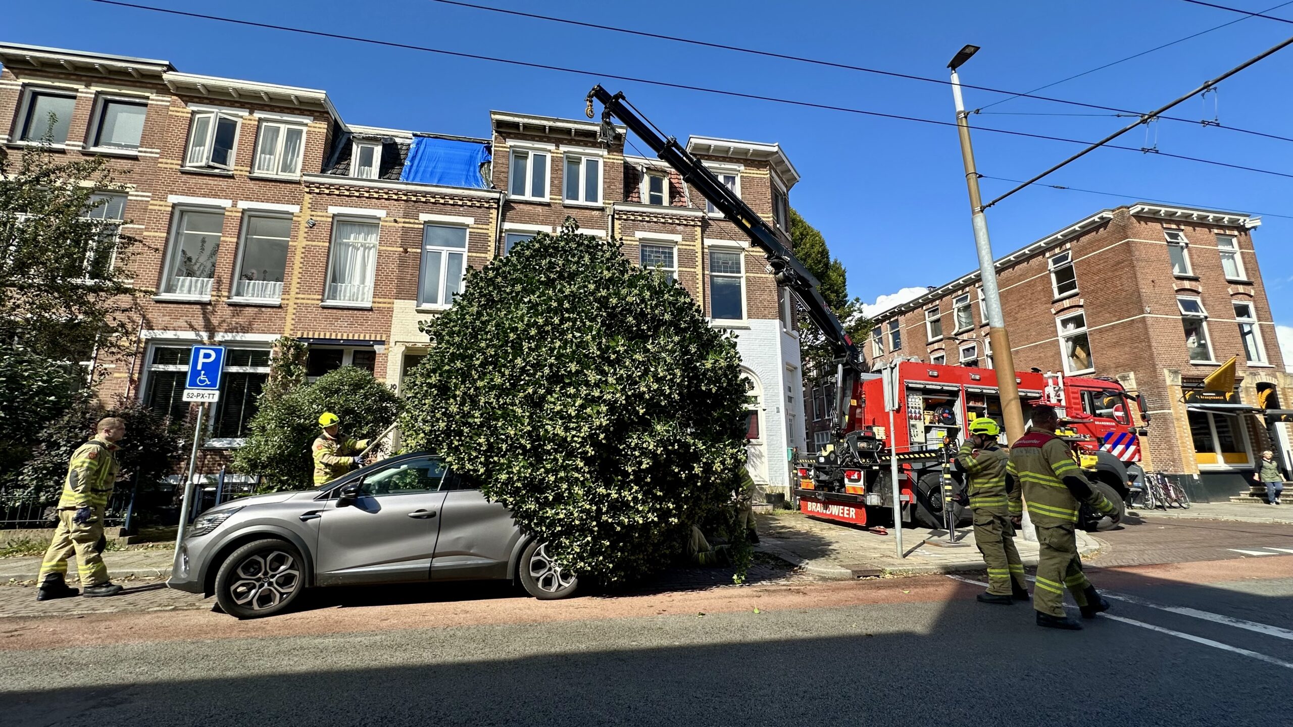De brandweer werd snel ter plaatse geroepen om de situatie veilig te stellen. Na enige tijd wisten de brandweerlieden de omgevallen boom veilig van het voertuig te verwijderen. De eigenaar van de auto kon daarna zijn beschadigde voertuig, met schade aan zowel het dak als de achterklep, wegrijden.