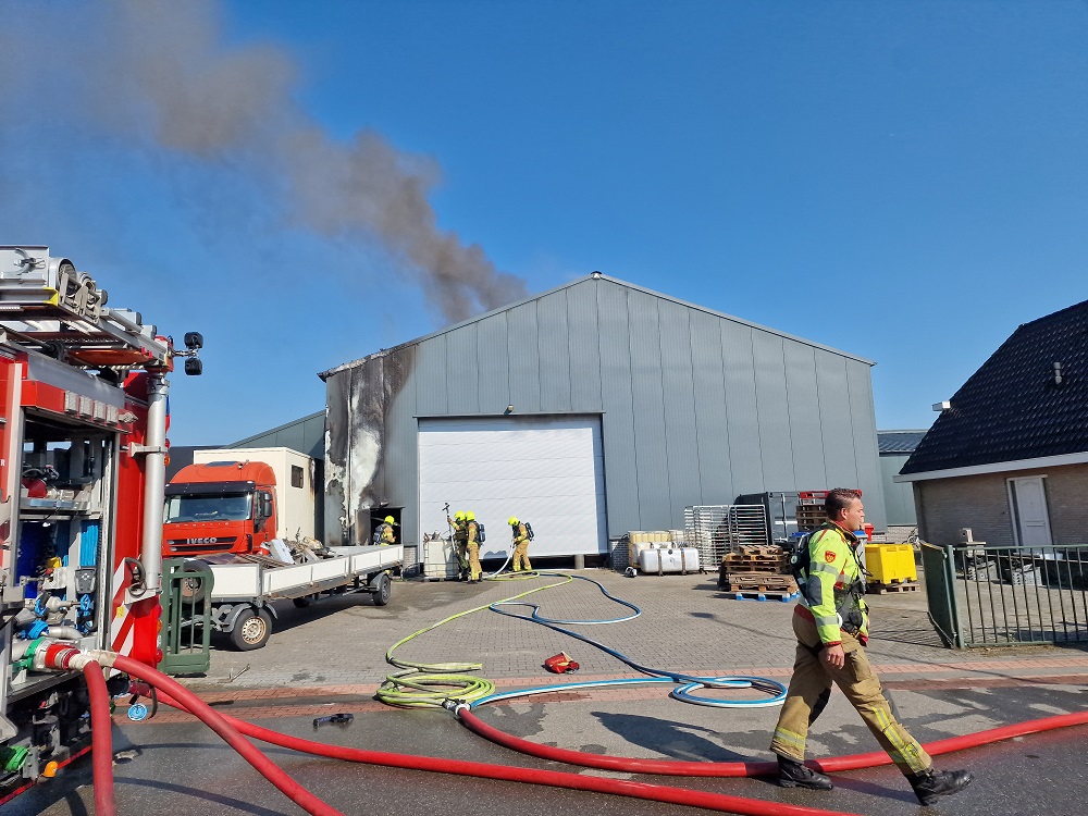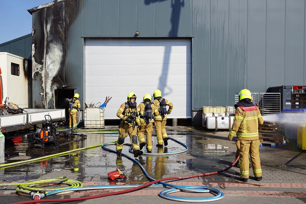 Dak van loods in brand: twee gasflessen veiliggesteld