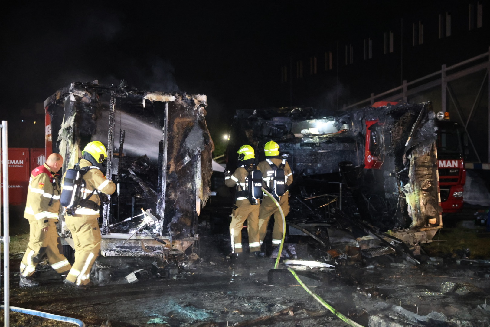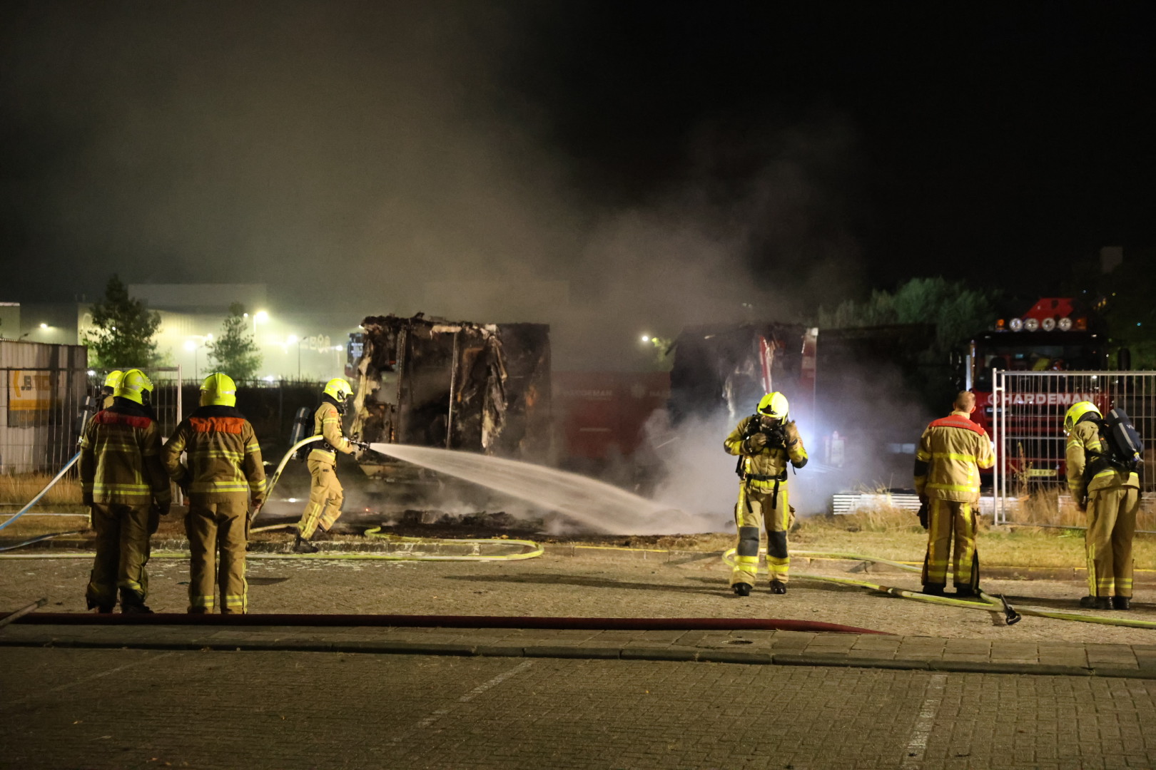 De brand werd ontdekt omstreeks 02:45 uur. De brandweer schaalde al snel op naar middelbrand en stuurde meerdere voertuigen ter plekke.