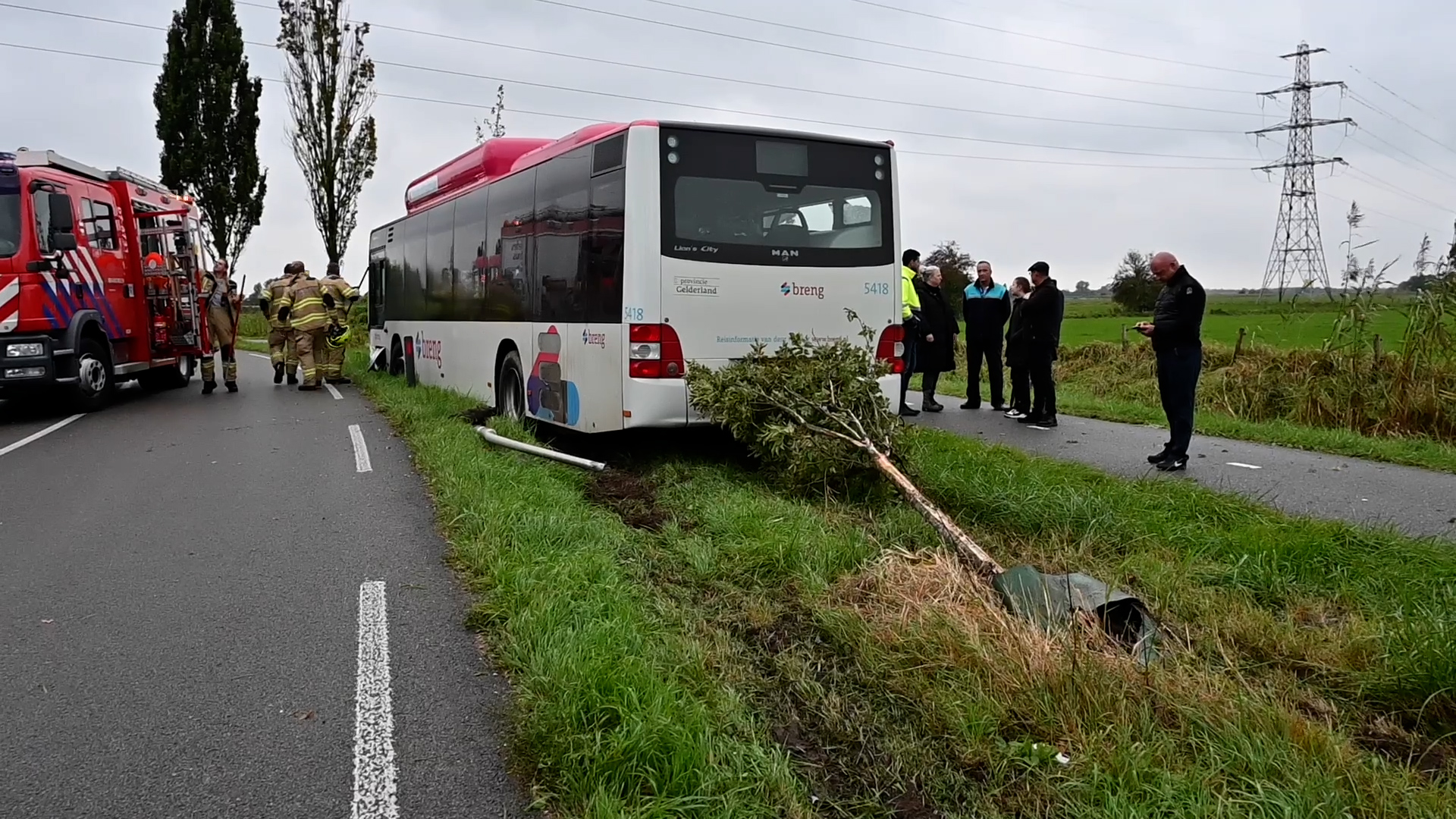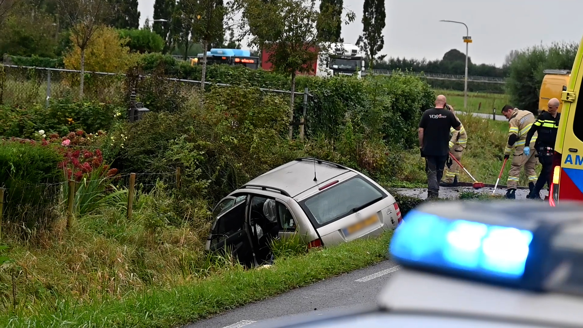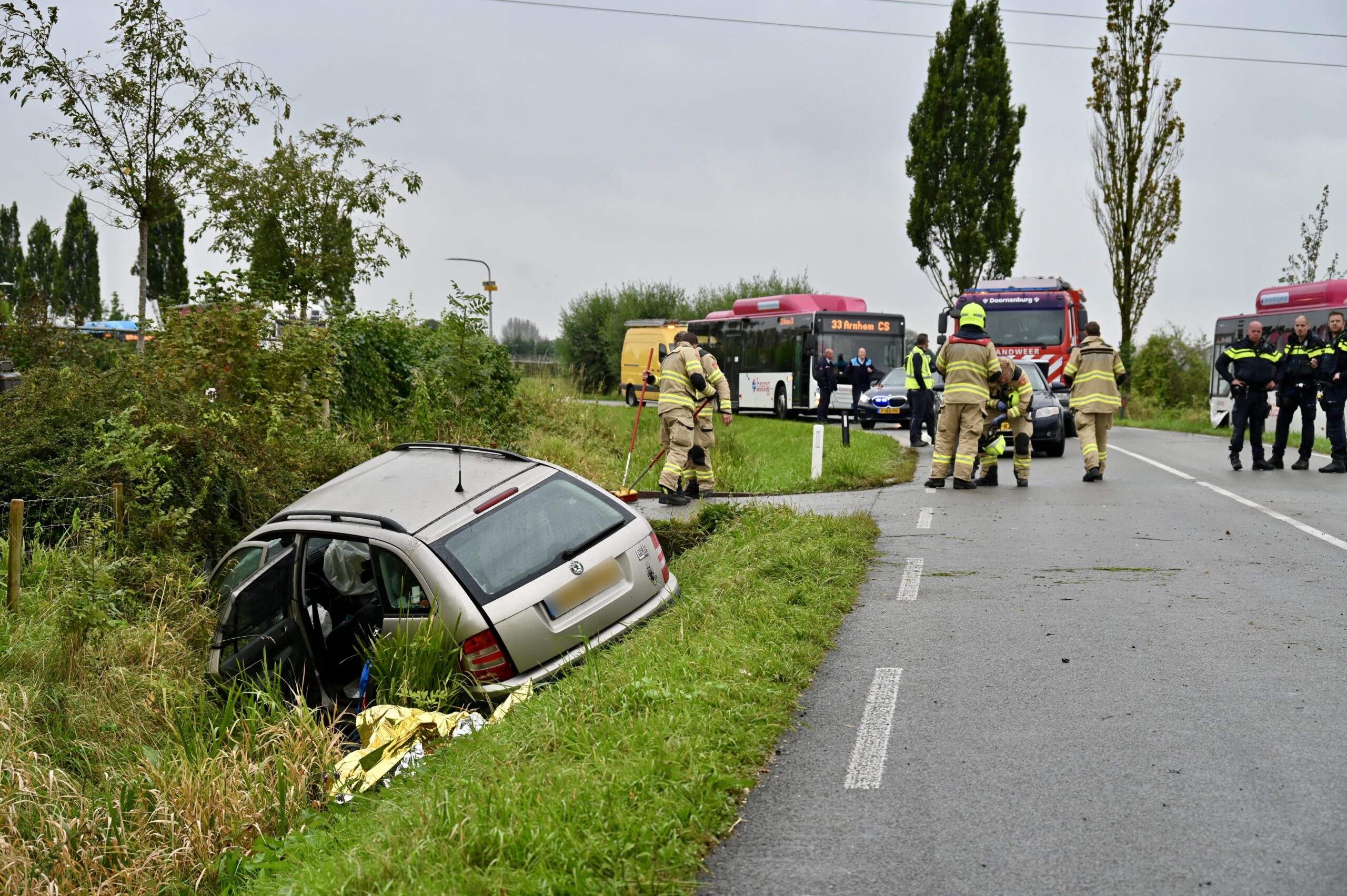 Door de klap belandde de auto deels in een sloot, en het motorblok kwam enkele meters verderop terecht. De lijnbus reed door de impact meerdere paaltjes en boompjes om. De buschauffeur en passagiers bleven ongedeerd, maar zijn flink geschrokken.