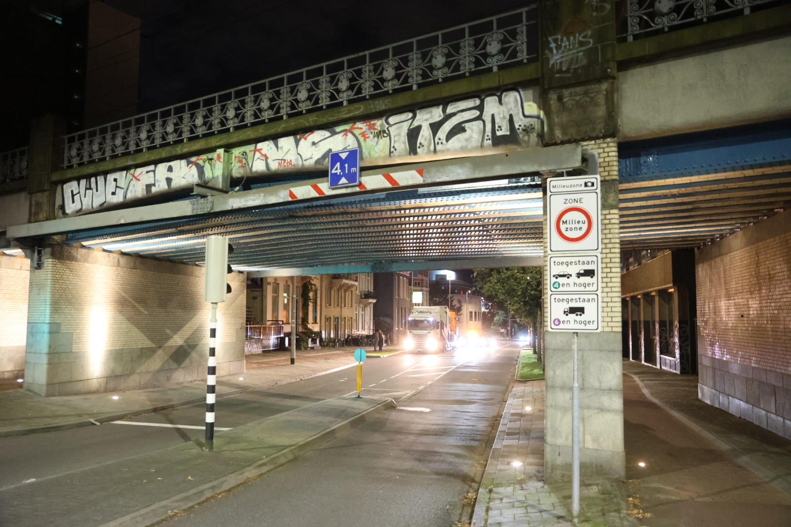 ARNHEM – Donderdagavond botste een vrachtwagen tegen een spoorviaduct op de Apeldoornsestraat in Arnhem.