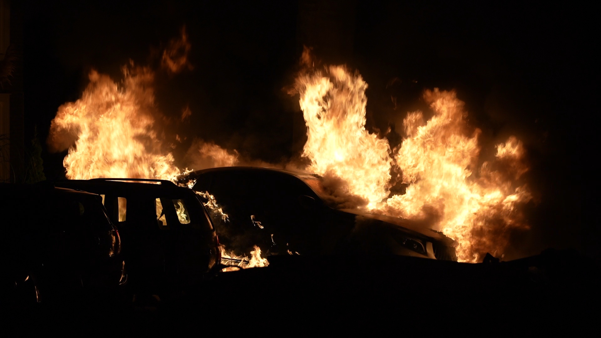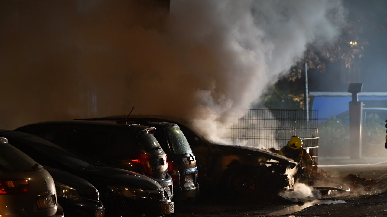 De politie heeft de straat afgezet om omstanders op afstand te houden, aangezien veel mensen op het vuur afkwamen. De brandweer kreeg de brand snel onder controle, maar de auto brandde volledig uit.