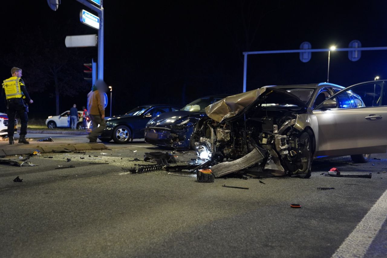 Eén persoon is met onbekend letsel per ambulance naar het ziekenhuis gebracht. De kruising is deels afgesloten, terwijl het overige verkeer via een omleiding wordt geleid.
