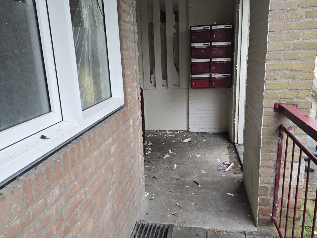 DOORWERTH – In de nacht van zaterdag op zondag heeft een explosie plaatsgevonden in de trappenhal van een flatgebouw aan de Richtersweg in Doorwerth. De explosie richtte zich vermoedelijk op de eigenaar van een bestelbus, waar kort daarvoor een poging was gedaan om deze in brand te steken. Door de ontploffing sneuvelde ook een raam van de flat, waardoor andere bewoners werden getroffen.