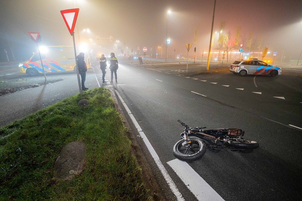 De jongeman op de fatbike stak bij de verkeerslichten de weg over toen hij werd aangereden. Het is nog niet duidelijk wie van de twee door het rode verkeerslicht is gereden. Het slachtoffer is met onbekende verwondingen per ambulance naar het ziekenhuis vervoerd. De automobilist bleef ongedeerd.