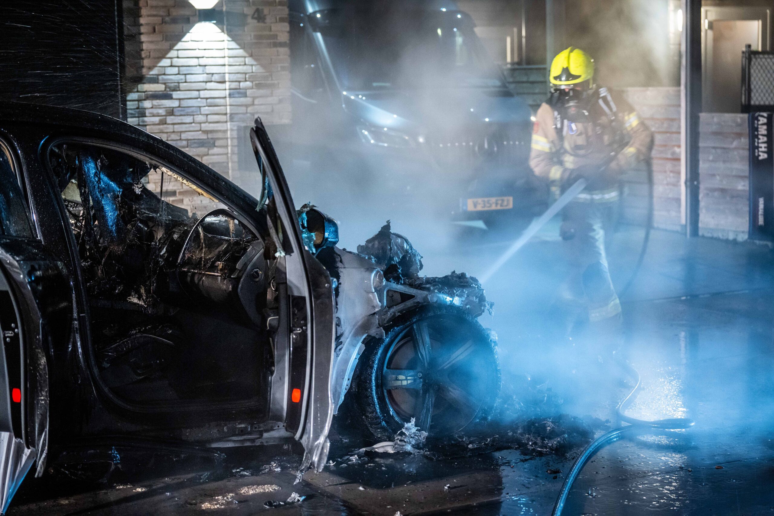 De eerste brand werd rond 02.00 uur gemeld aan de Amulet, waar een Volvo aan de voorkant in brand stond. De brandweer had het vuur snel onder controle, maar de auto liep zoveel schade op dat deze als verloren wordt beschouwd.