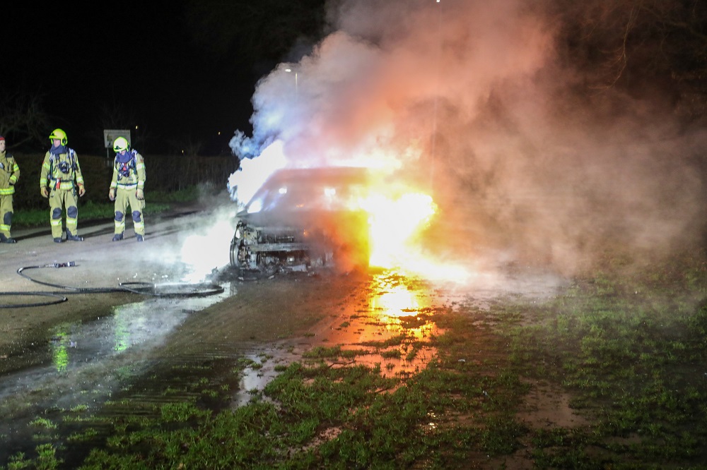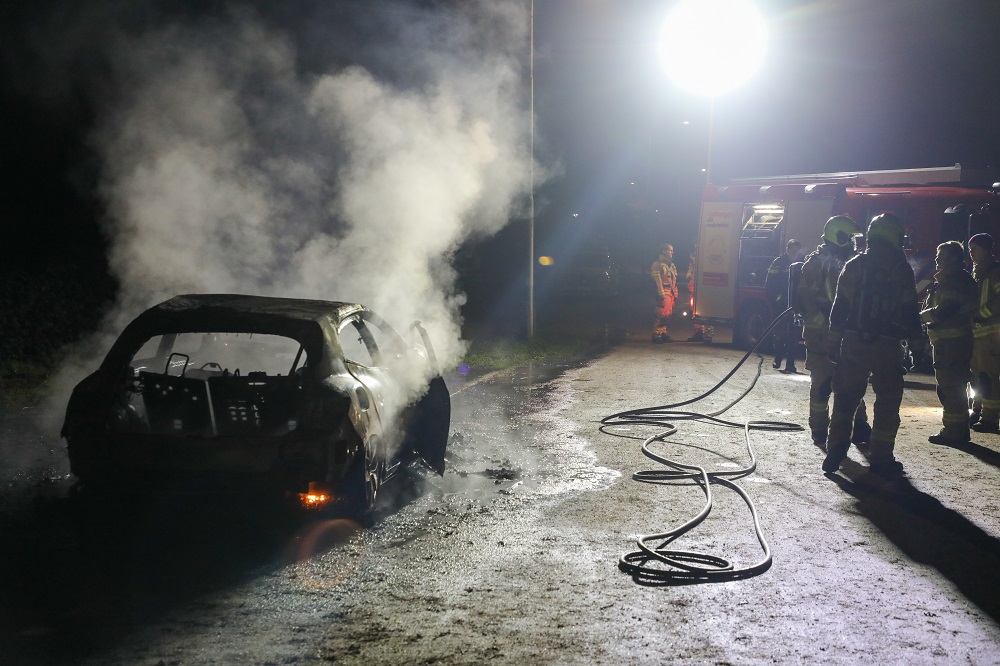 Auto volledig uitgebrand op verlaten parkeerplaats