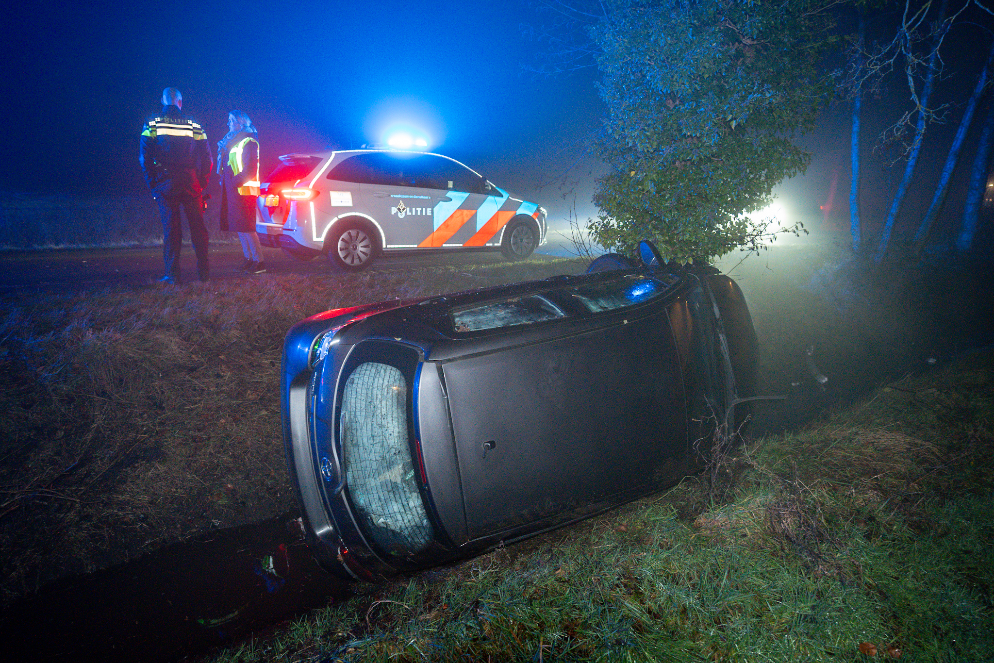 Automobilist op zijn zijkant bij ongeluk Dieren