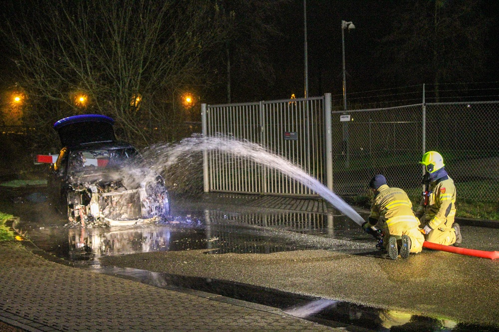 Een passerende scooterrijder zag de brand en waarschuwde de brandweer. Ondanks de snelle inzet brandde de elektrische Audi volledig uit.