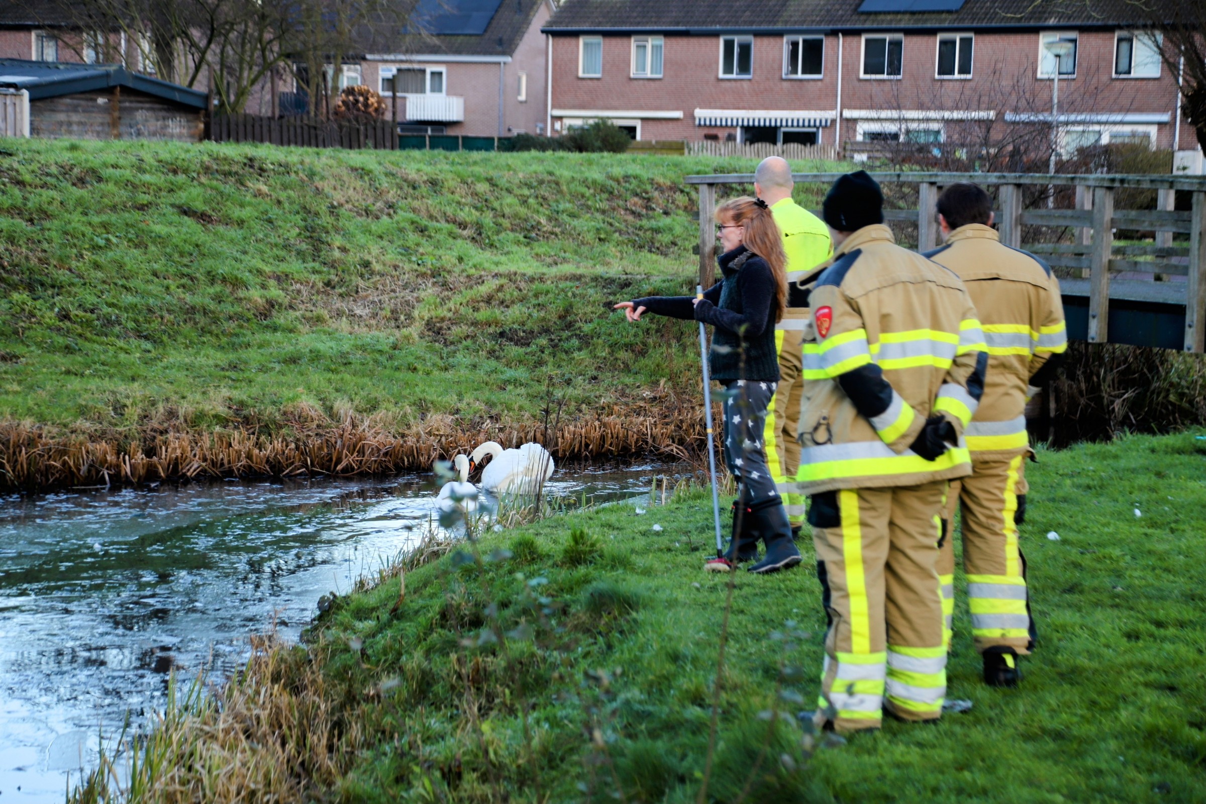 Voorbijgangers zagen dat twee zwanen in de sloot vastzaten in het ijs. Vervolgens werd de dierenambulance en brandweer gebeld. Een andere bewoner besloot vervolgens het ijs direct rondom de zwanen stuk te slaan om ze te bevrijden.
