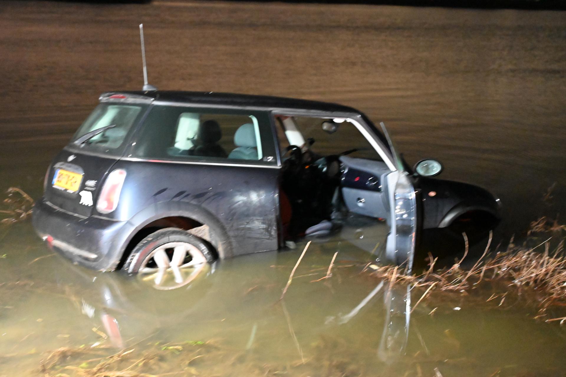 Auto raakt van dijk en belandt in water