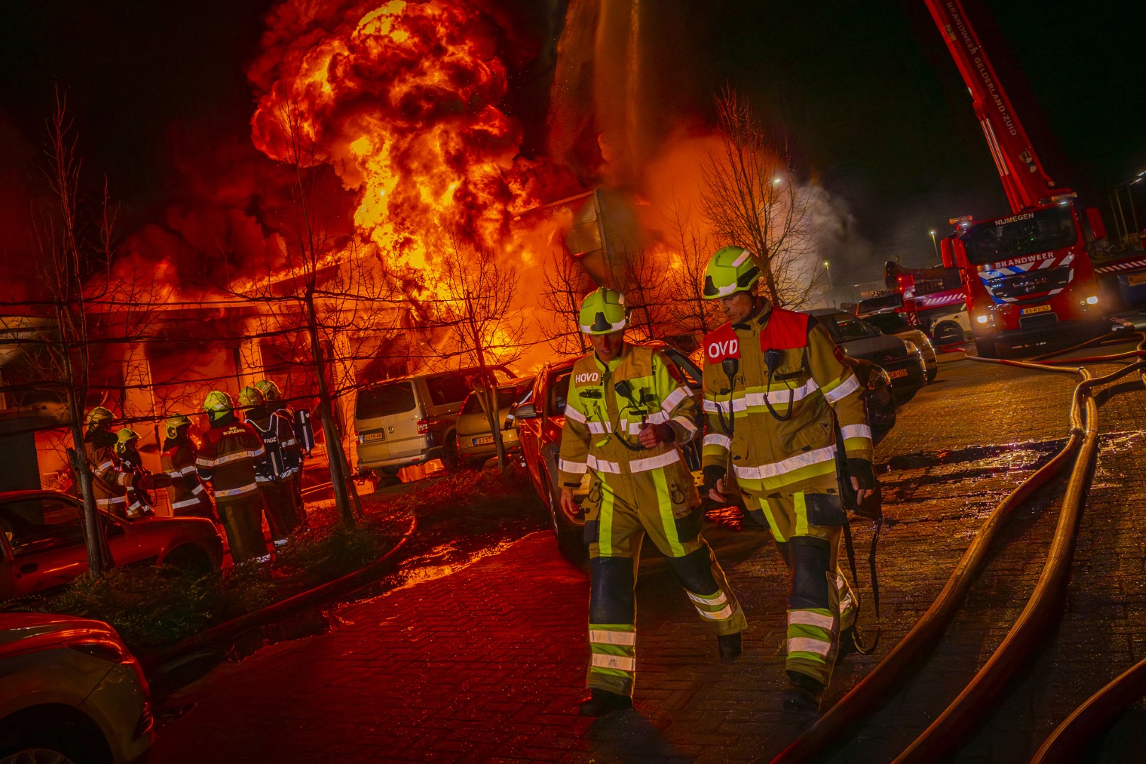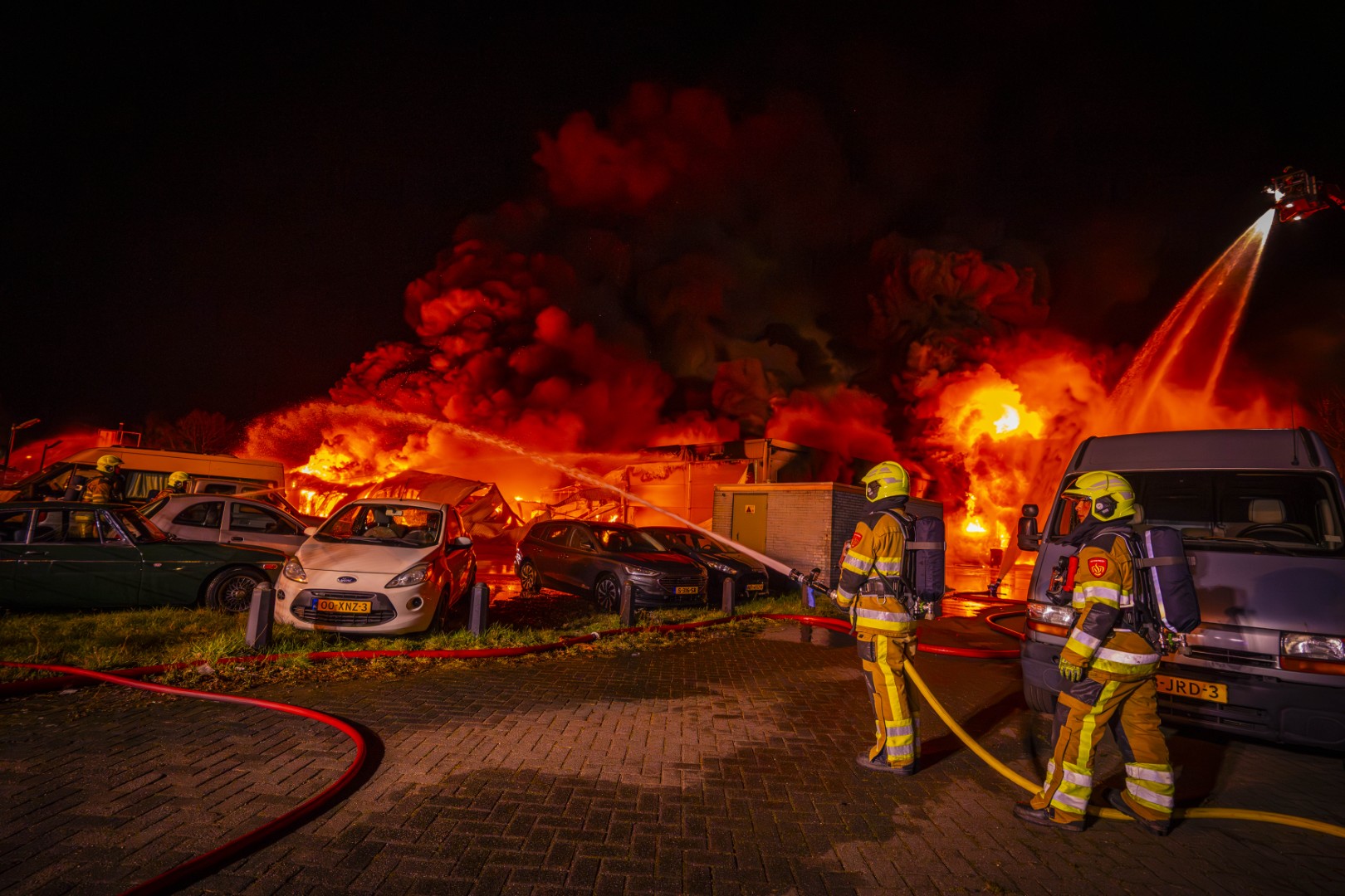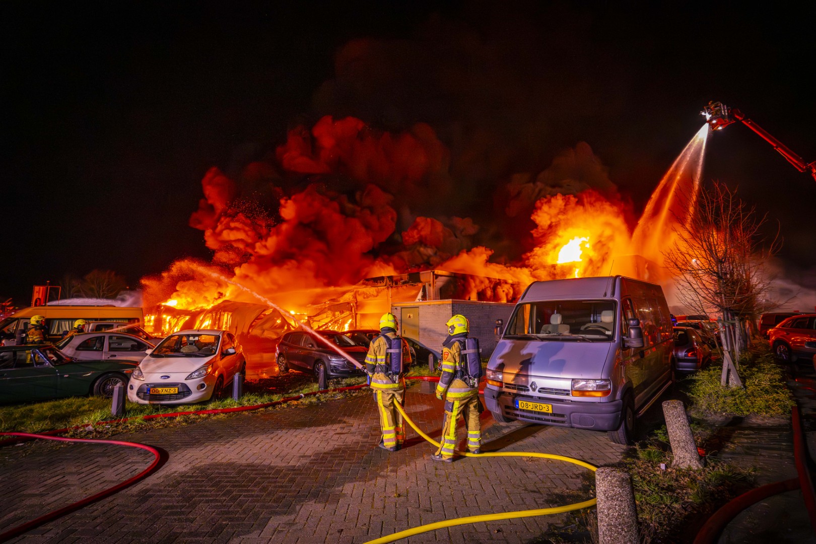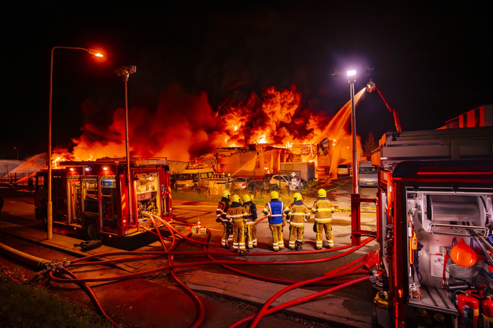 Bedrijven verwoest door zeer grote brand op industrieterrein