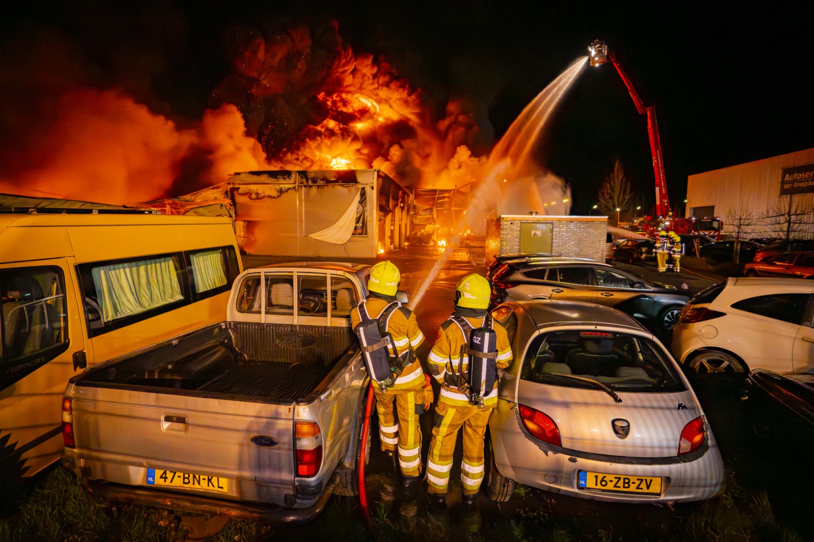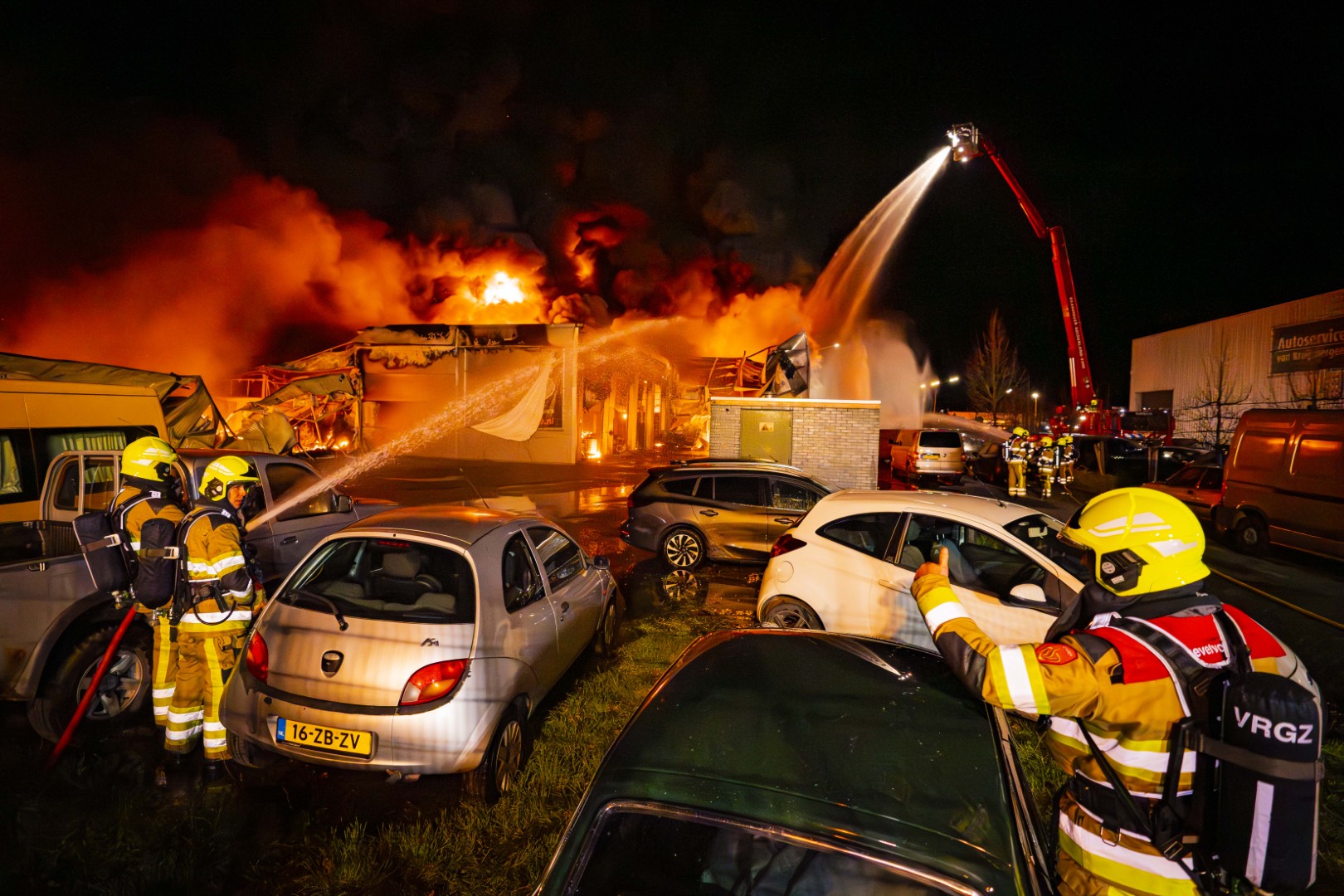 Volgens de veiligheidsregio raakte niemand gewond. Rond 23.00 uur waren de uitslaande vlammen onder controle, maar de brandweer bleef bezig om te voorkomen dat het vuur oversloeg naar andere panden. In het getroffen gebouw zijn twee garagebedrijven en een groothandel in auto-onderdelen gevestigd. Vanwege het risico op exploderende gasflessen werd de omgeving ruim afgezet.
