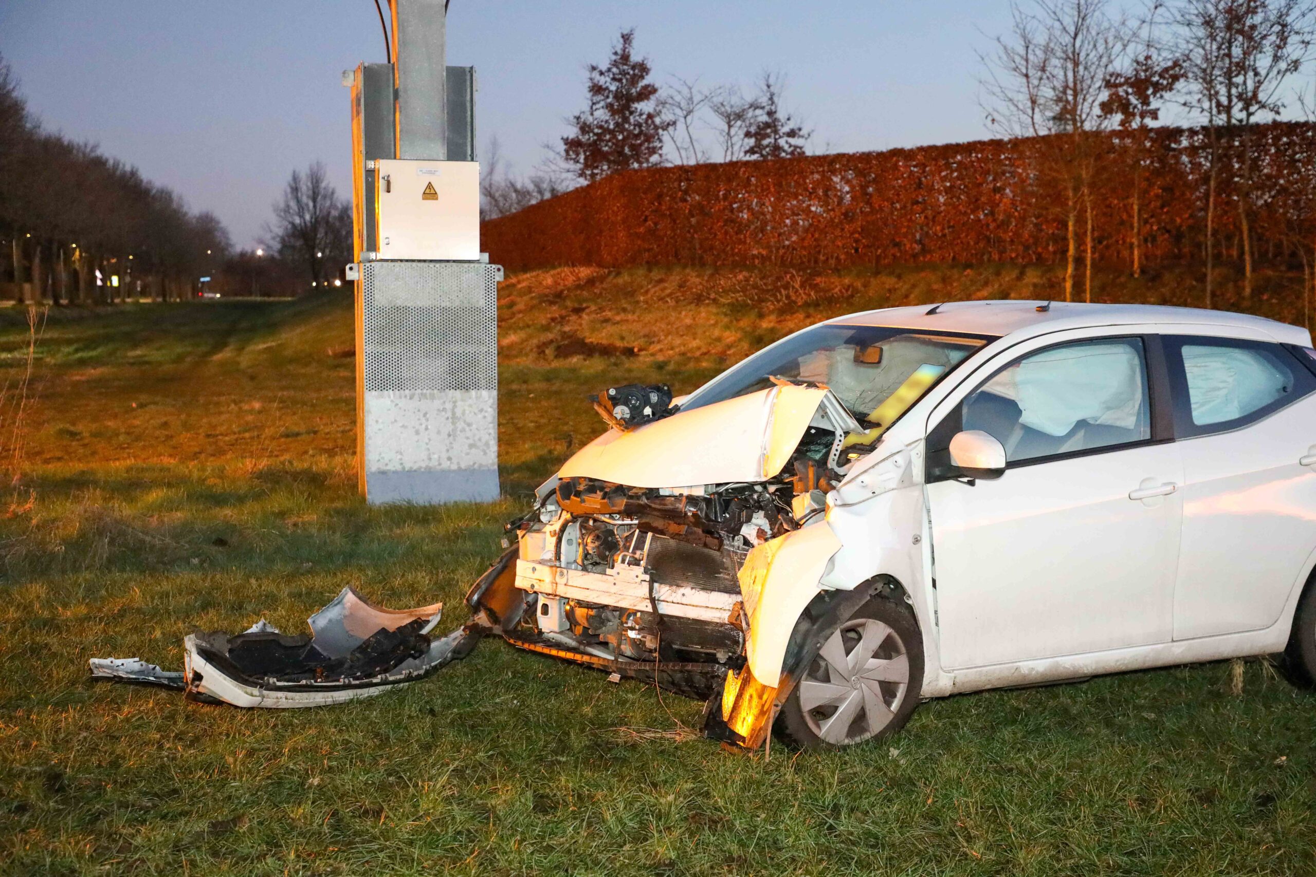 Het ongeval gebeurde rond 18:30 uur. De man reed vanuit de richting van de Lidl naar de Plantagelaan en ging in een bocht rechtdoor, waarna hij door een weiland reed en hard op een elektriciteitsmast botste. Ambulancepersoneel controleerde de bestuurder, maar hij bleek ongedeerd. Wel moest hij mee met agenten vanwege een mogelijk geval van rijden onder invloed.
