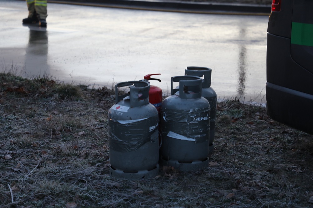Dakdekker brengt gasflessen in veiligheid na brand in bestelbus