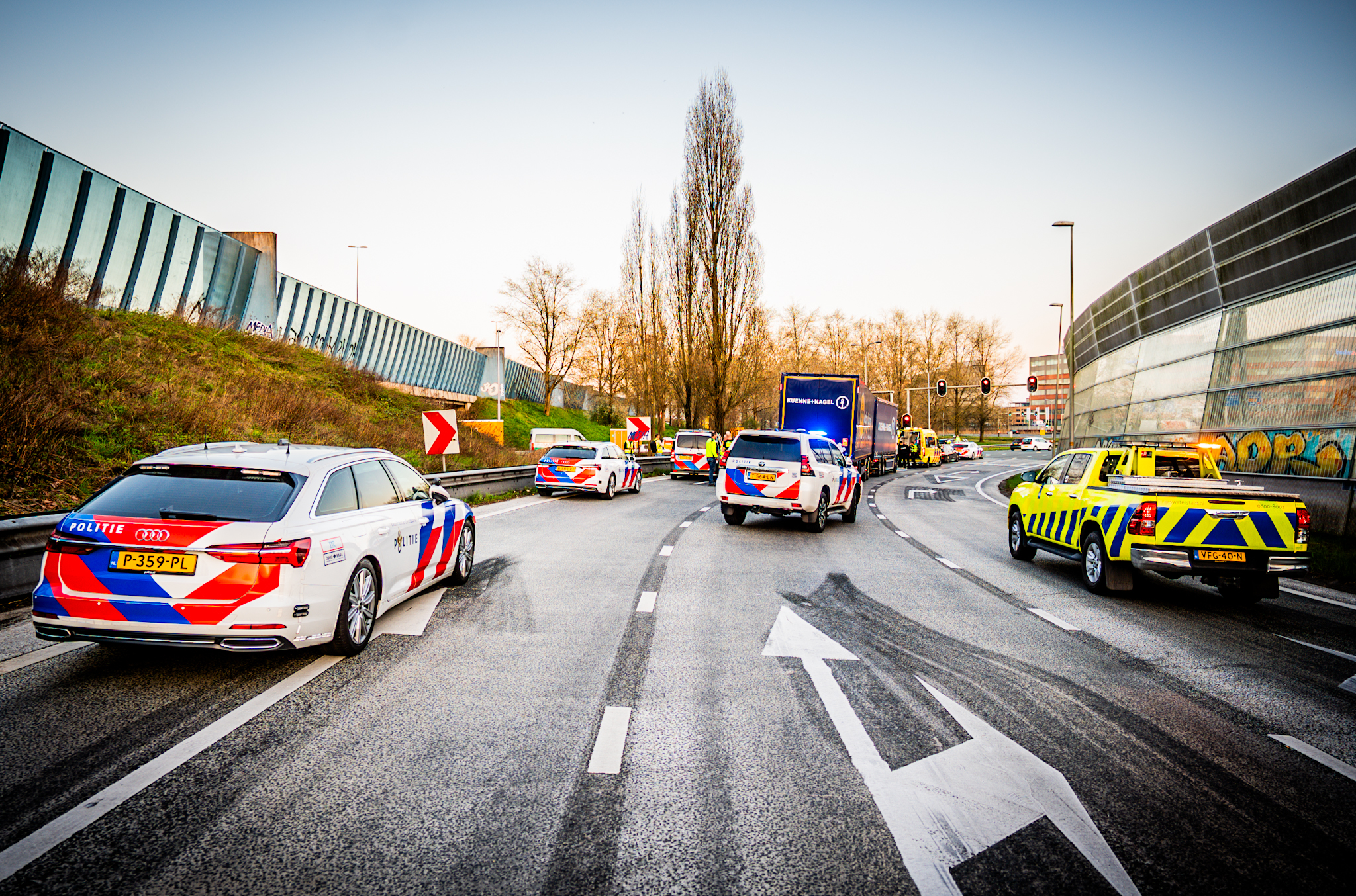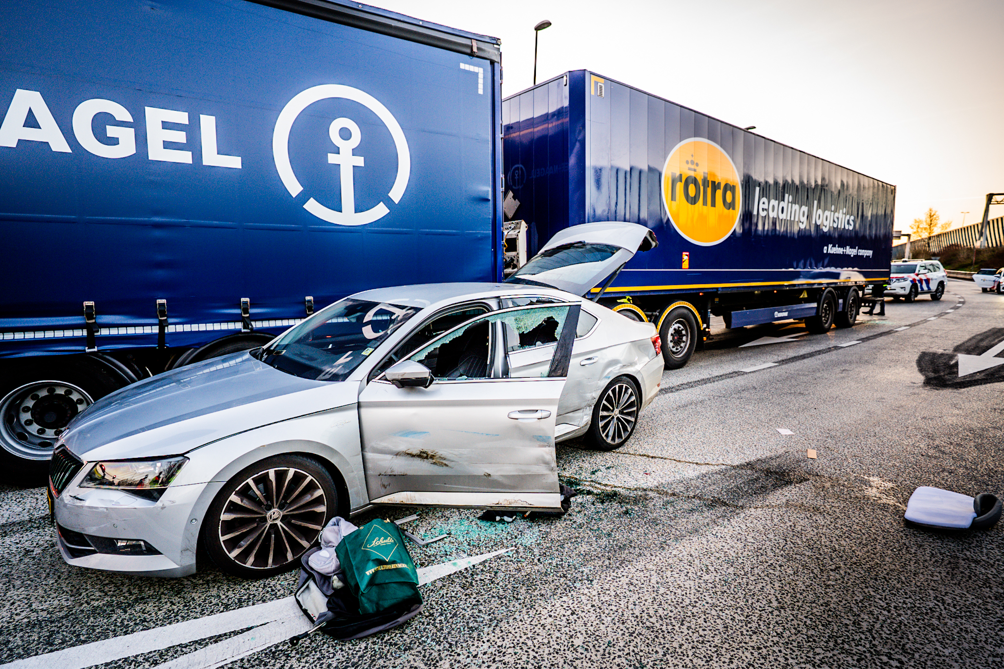 ARNHEM – Donderdagmiddag eindigde een achtervolging op de A12 bij de afrit van knooppunt Velperbroek, waar een auto op een stilstaande vrachtwagen en een andere auto botste. De bestuurder probeerde te vluchten, waarop agenten waarschuwingsschoten losten. De afrit werd afgesloten vanwege de politieactie.