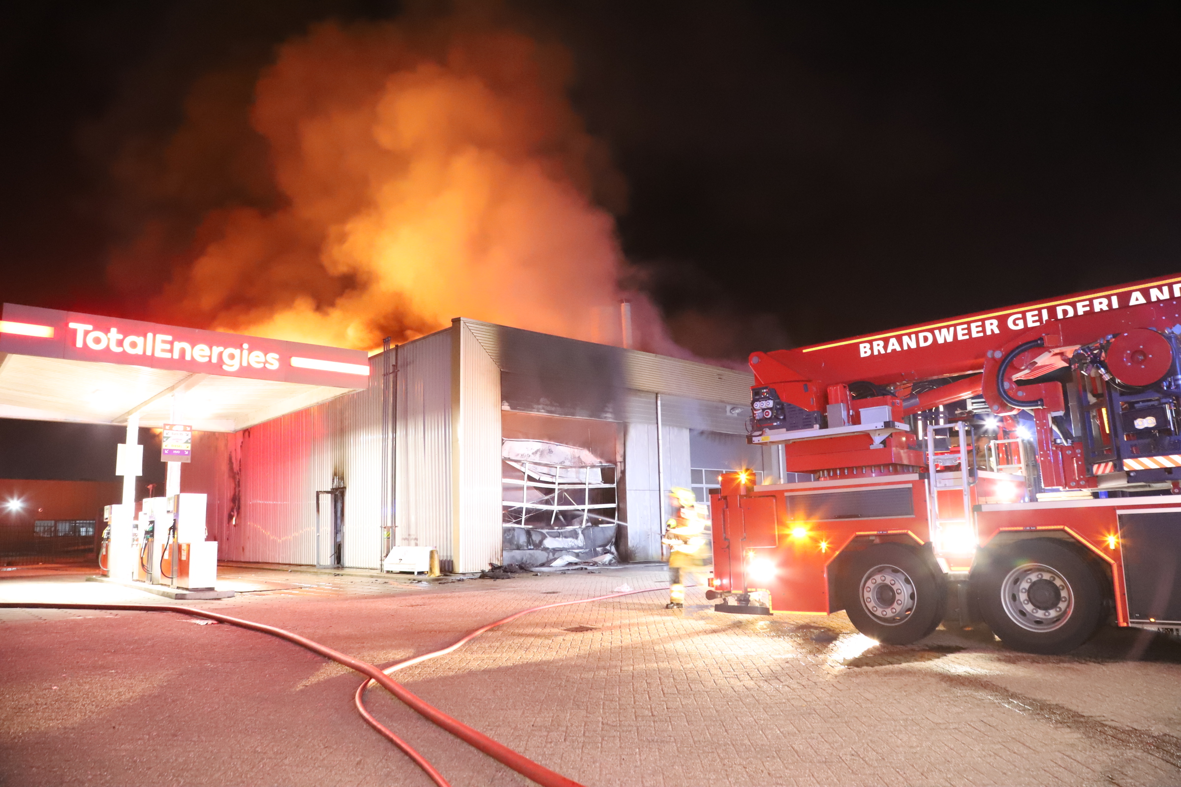 TIEL – Vrijdagavond om 22.35 uur is een zeer grote brand uitgebroken bij een carrosseriebedrijf aan de Sir Rowland Hillstraat in Tiel. De brand woedde in een bedrijfspand naast een tankstation.