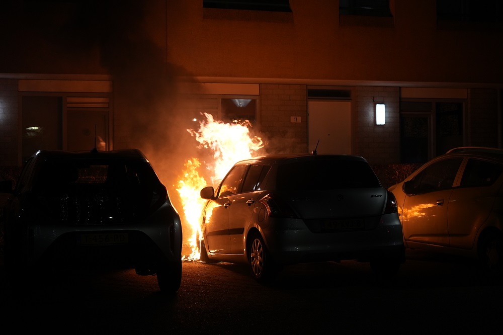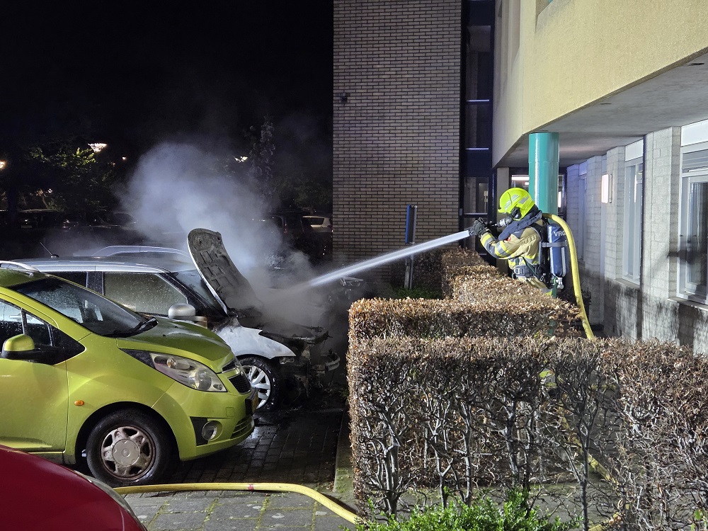 Bij aankomst van de brandweer stond de voorkant van het voertuig in brand. Het vuur werd snel onder controle gebracht. Een buurtbewoner meldde een harde knal te hebben gehoord. Een naastgelegen auto raakte aan de voorzijde flink beschadigd door de hitte.