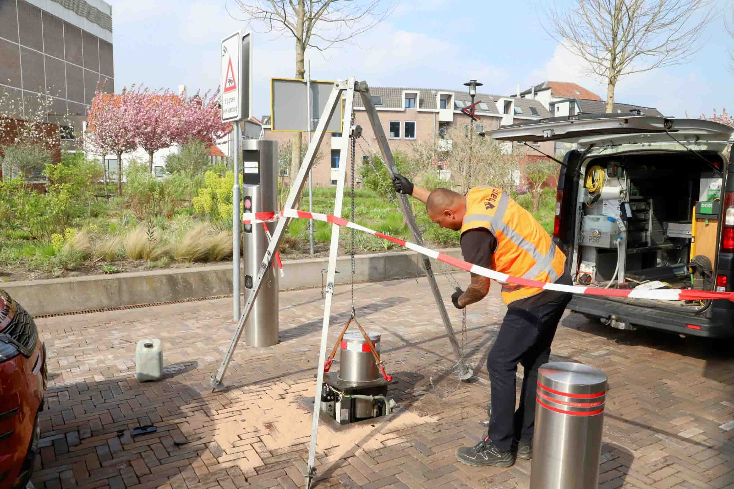 De paal is met een takel uit de grond gehaald. Tijdelijk is er een putdeksel geplaatst ter afdekking van de opening. De oorzaak lijkt opnieuw onoplettendheid te zijn geweest.