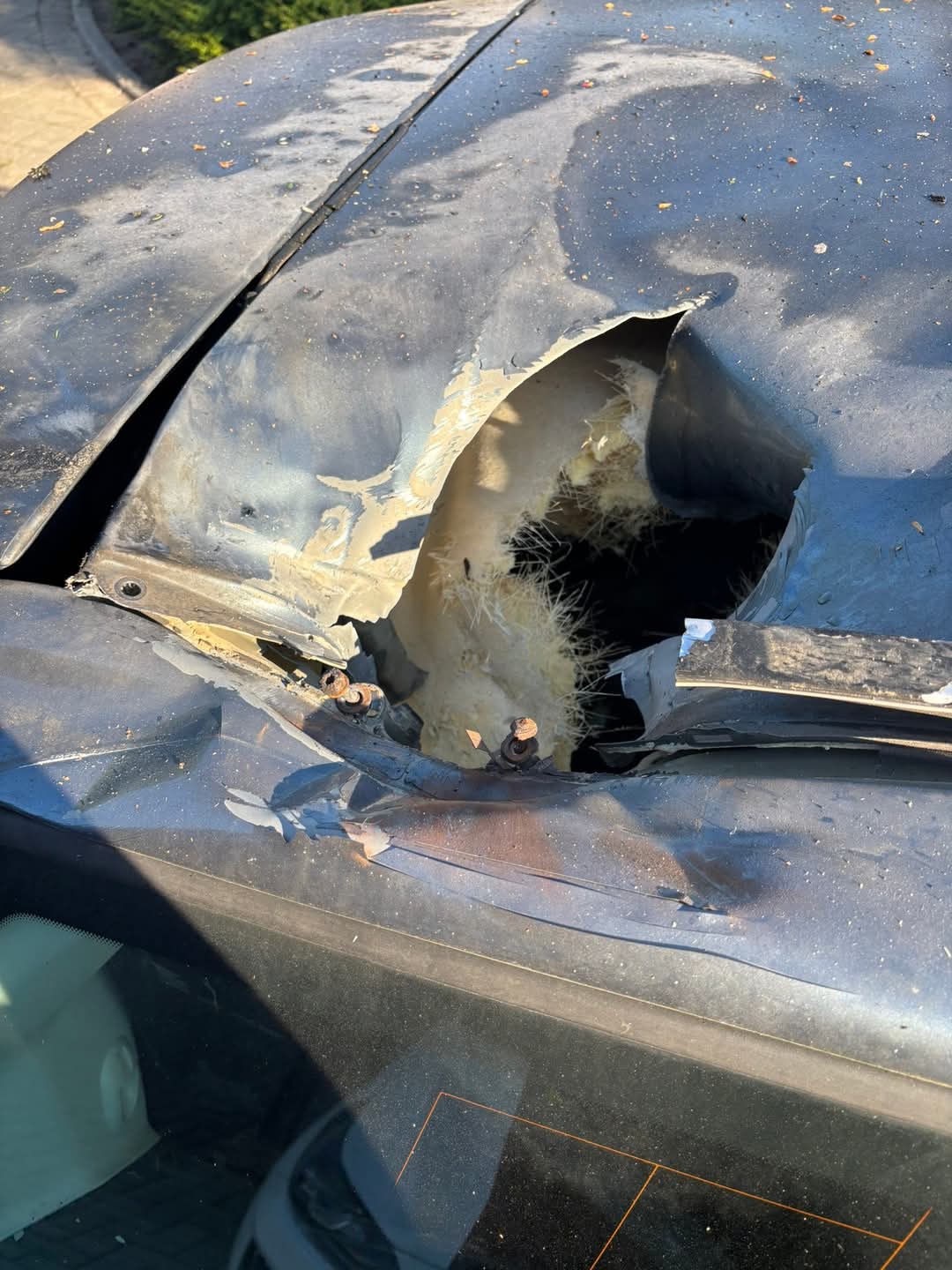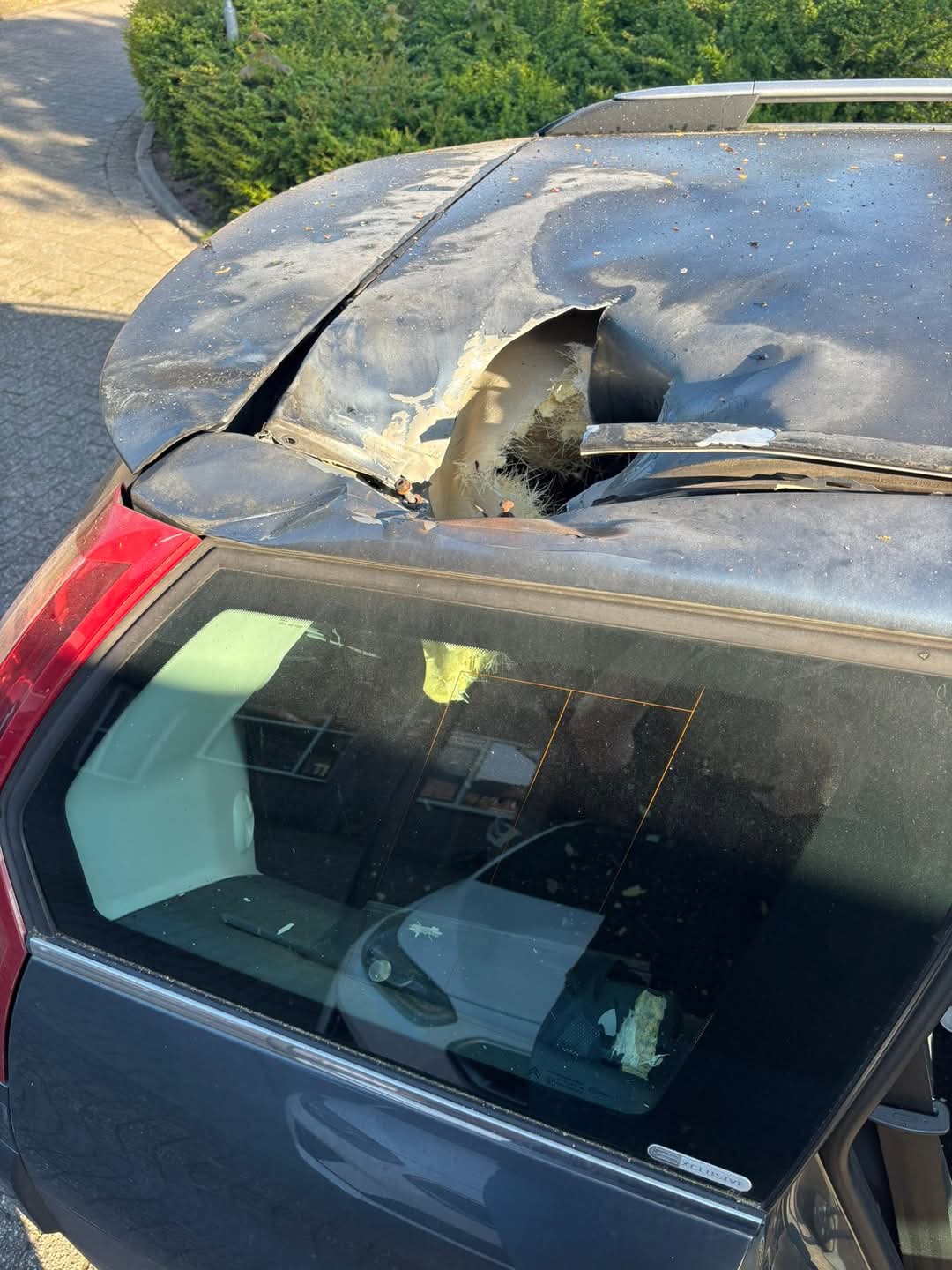 In de ochtend ontdekte de eigenaar dat zijn voertuig zwaar beschadigd was. Er zit onder meer een groot gat in het dak en er is een brandplek zichtbaar rond het gat. Wat precies is ontploft, is nog onbekend.
