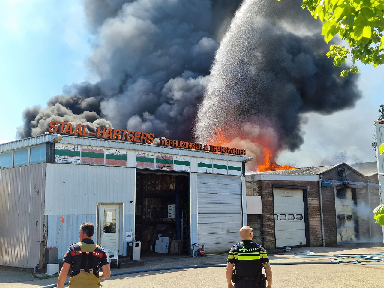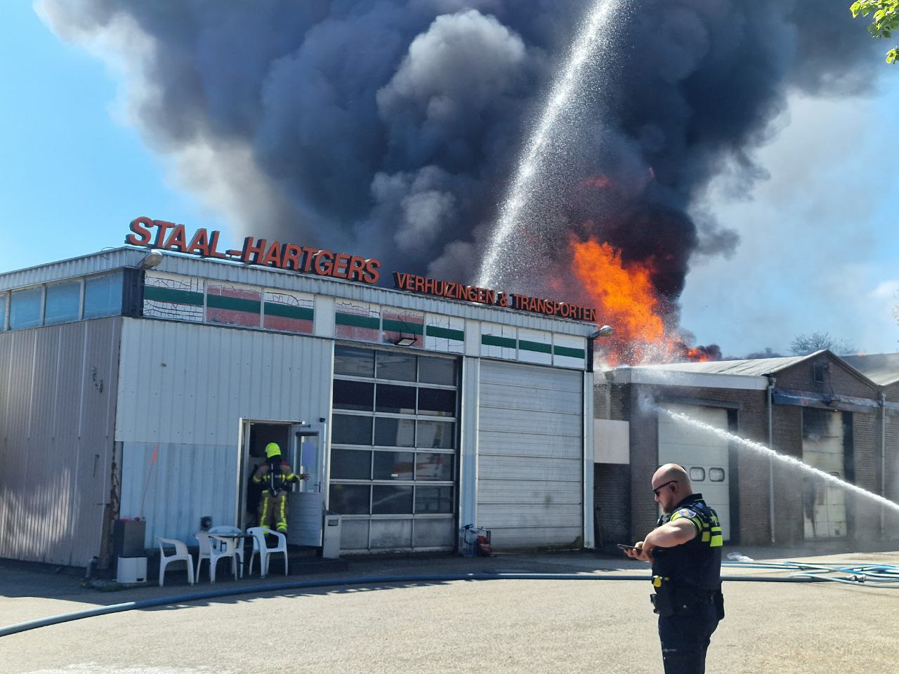 FOTO EN VIDEO UPDATE: Zeer grote brand bij verhuisbedrijf in woonwijk