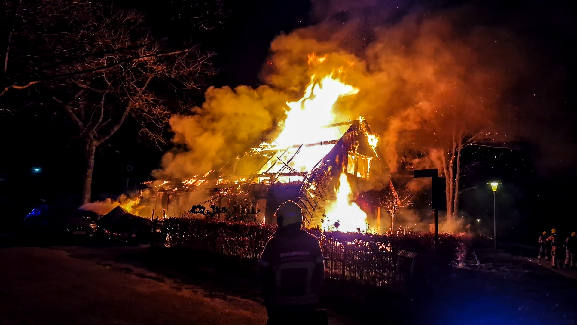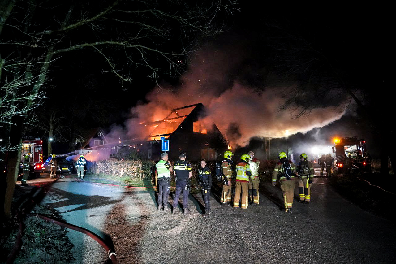 Bij aankomst stond het pand al in lichterlaaie, waarna werd opgeschaald naar ‘grote brand’. Meerdere tankautospuiten en waterwagens werden ingezet. De rode gloed was van grote afstand te zien. Na ruim een uur gaf de brandweer het sein ‘brand meester’. Nabluswerkzaamheden zijn nog gaande; mogelijk moeten delen van de woning worden gesloopt om bij vuurhaarden te komen.